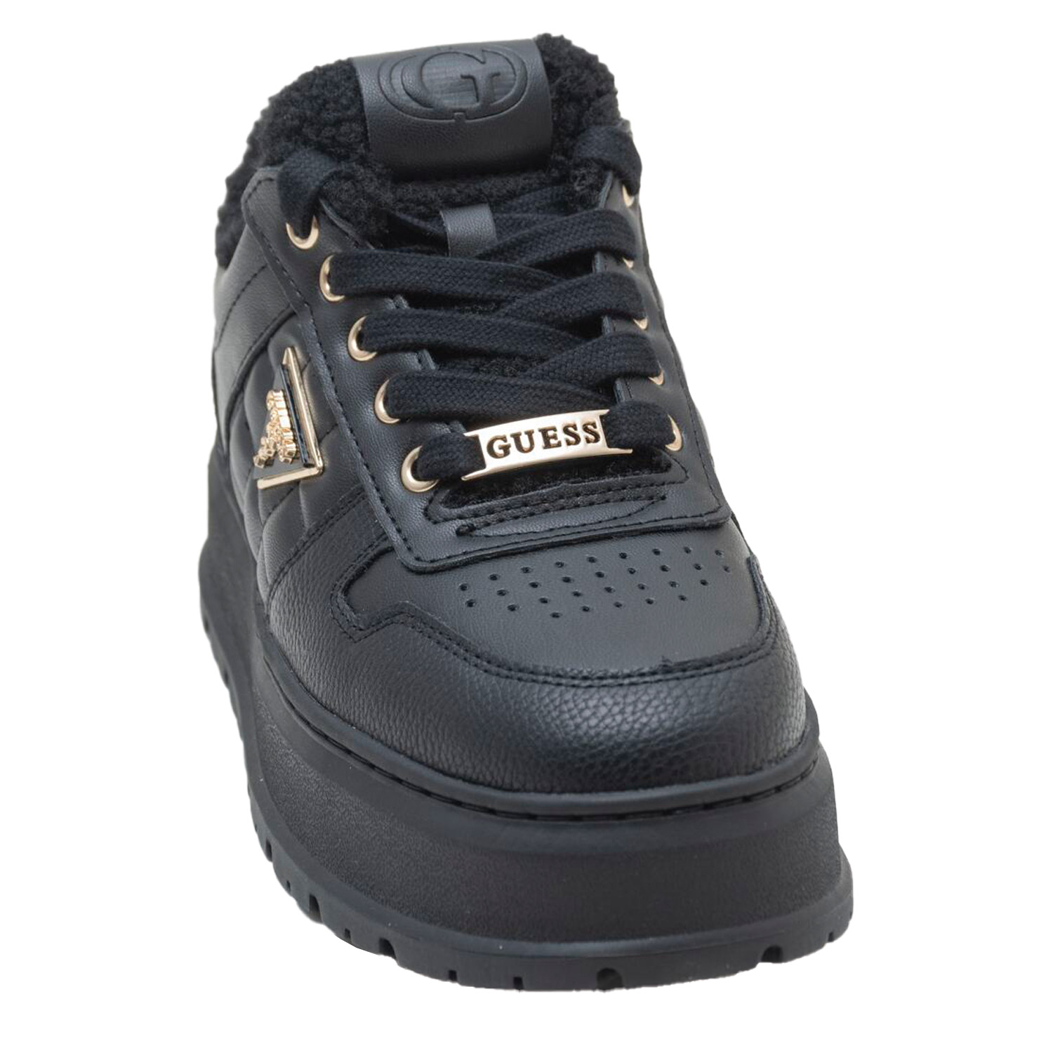 Guess γυναικείο sneaker, σε μαύρο χρώμα, κατασκευασμένο από οικολογικό δέρμα. Ύψος σόλας 4.5εκ.