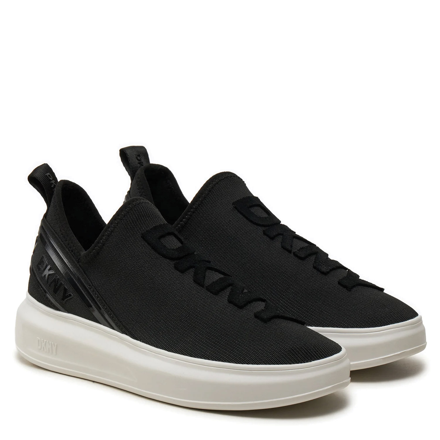 DKNY γυναικείο sneaker, σε μαύρο χρώμα, κατασκευασμένο από ύφασμα. Ύψος σόλας 3εκ.