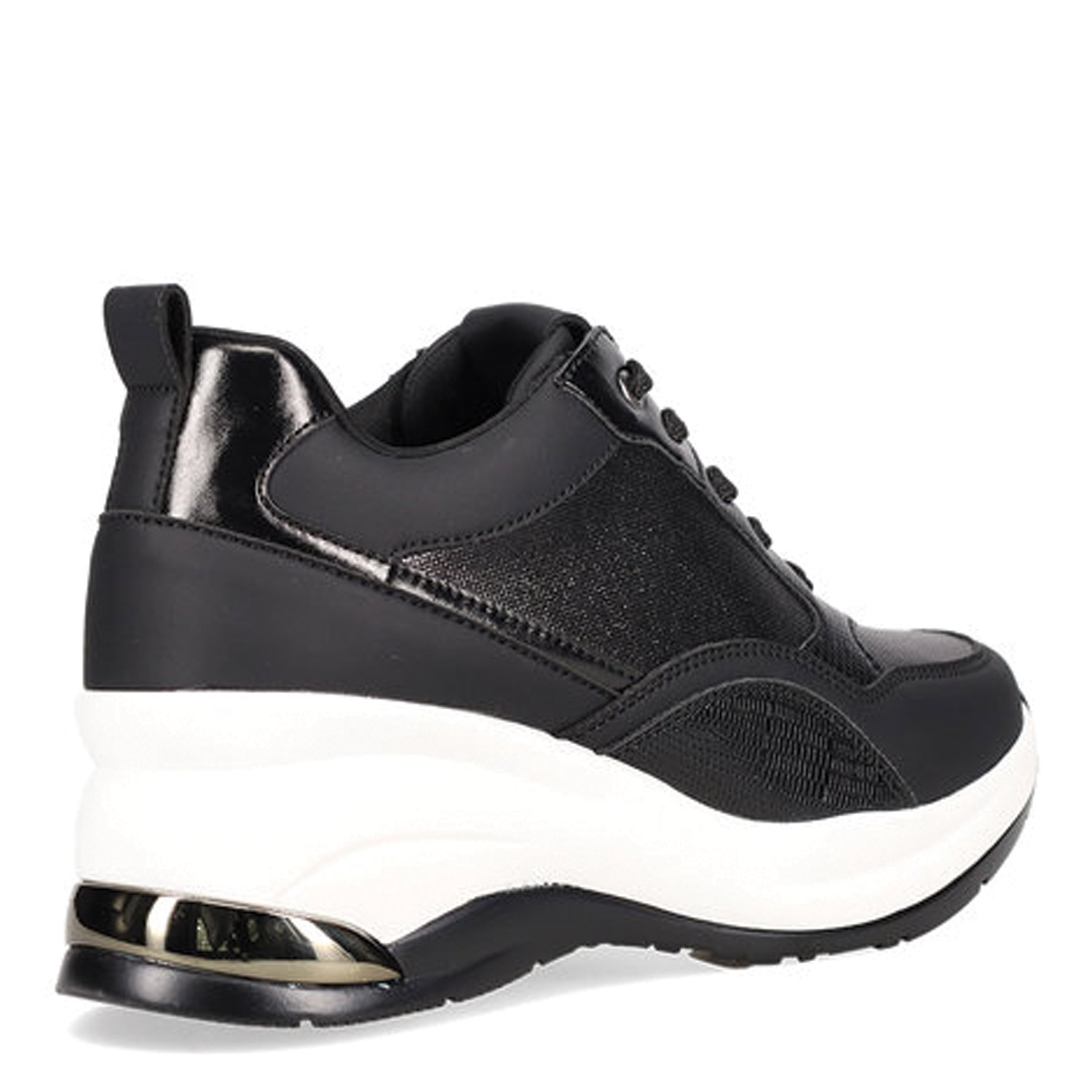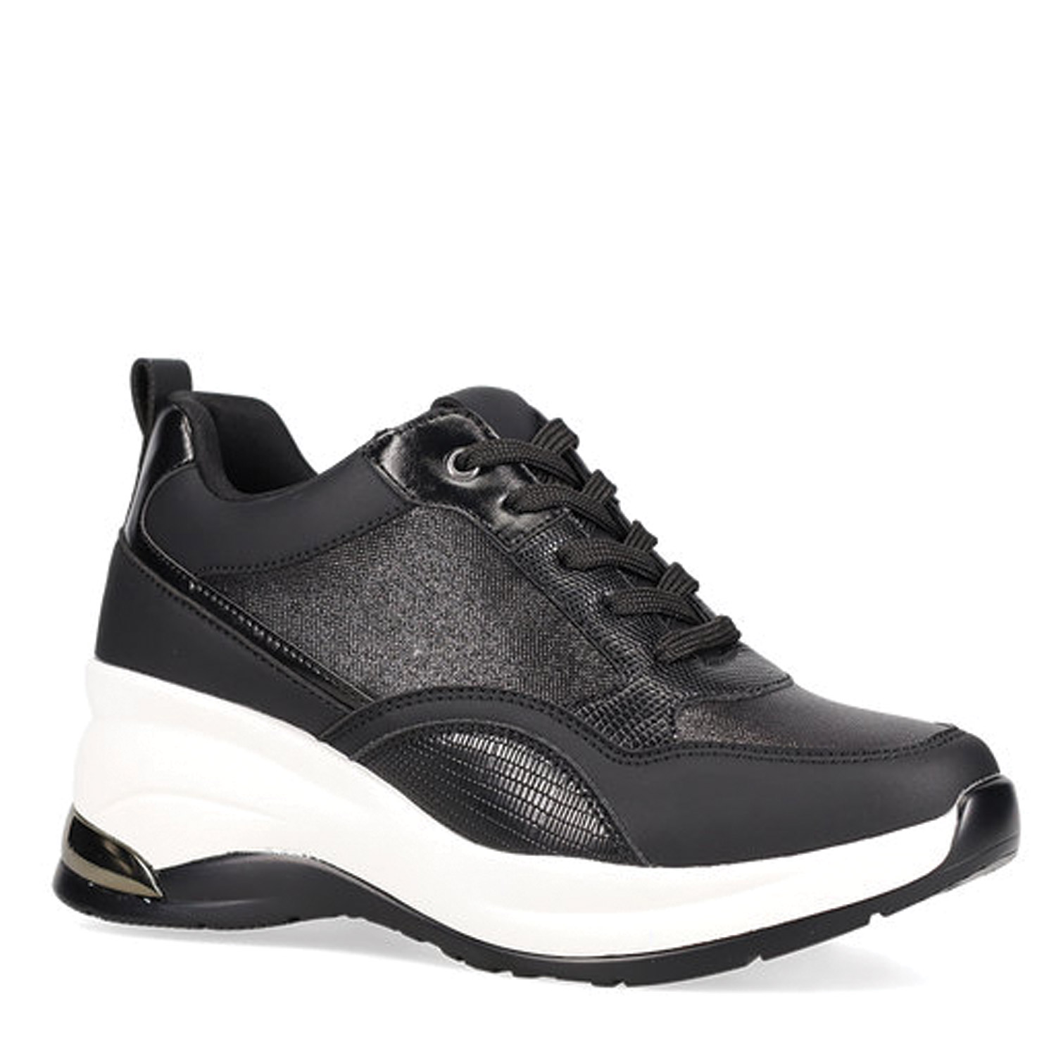 Μαύρο sneaker. Διαθέτει κρυφό τακούνι πλατφόρμα που χαρίζει επιπλόν ύψος. Δένει με κορδόνια.