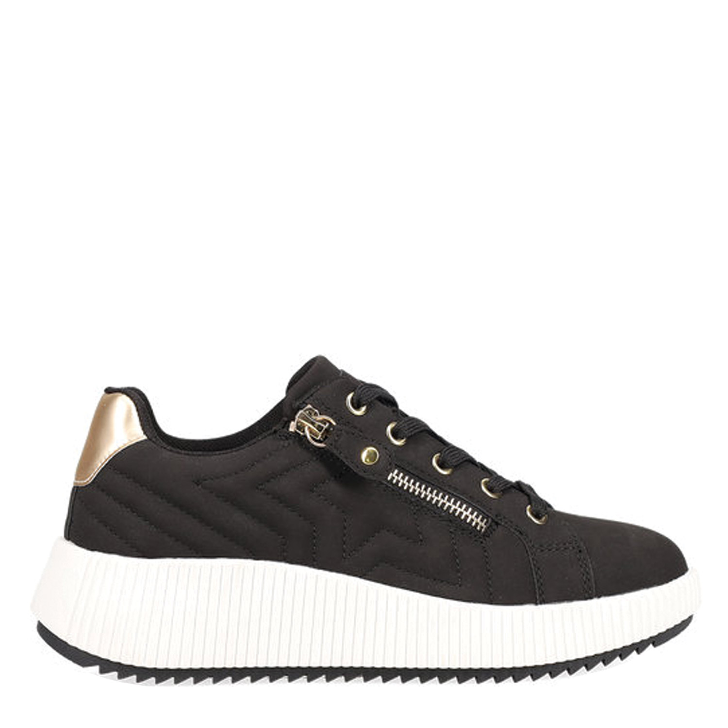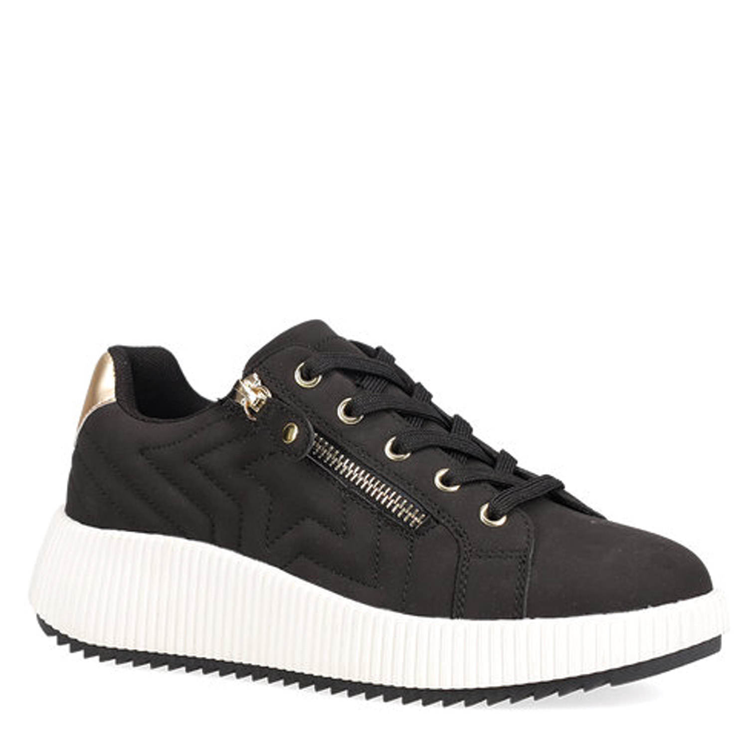 Μαύρο sneaker με χρυσές λεπτομέρειες και φερμουάρ. Δένει με κορδόνια.