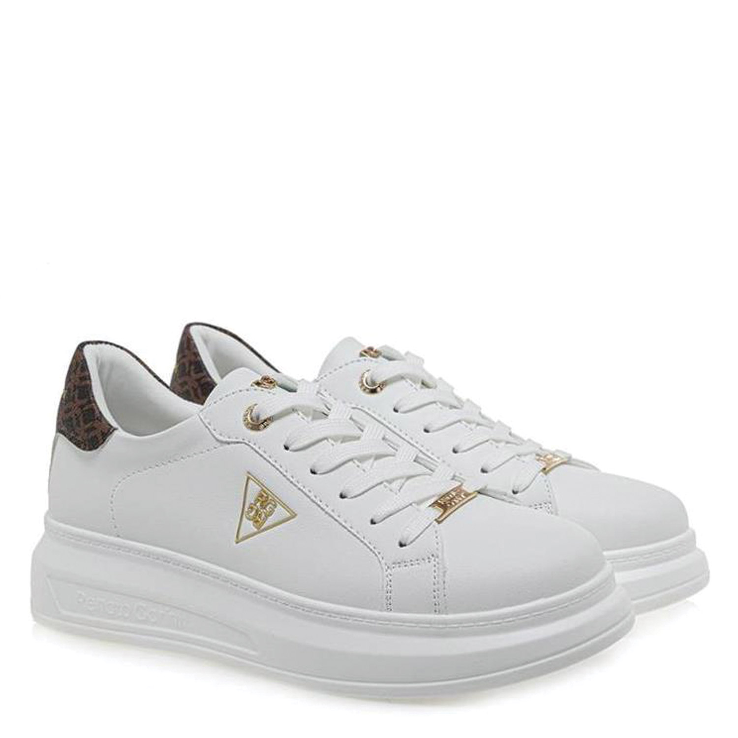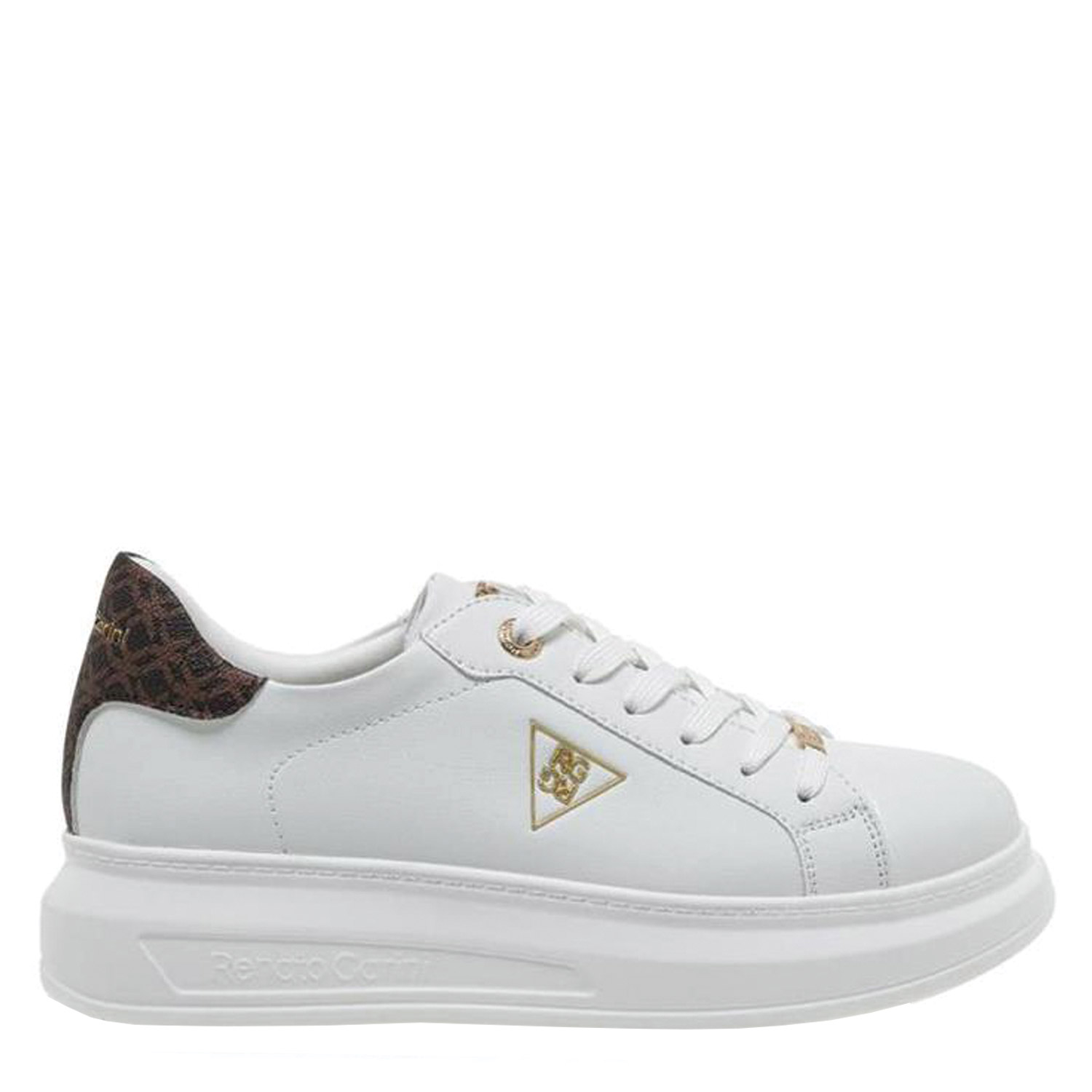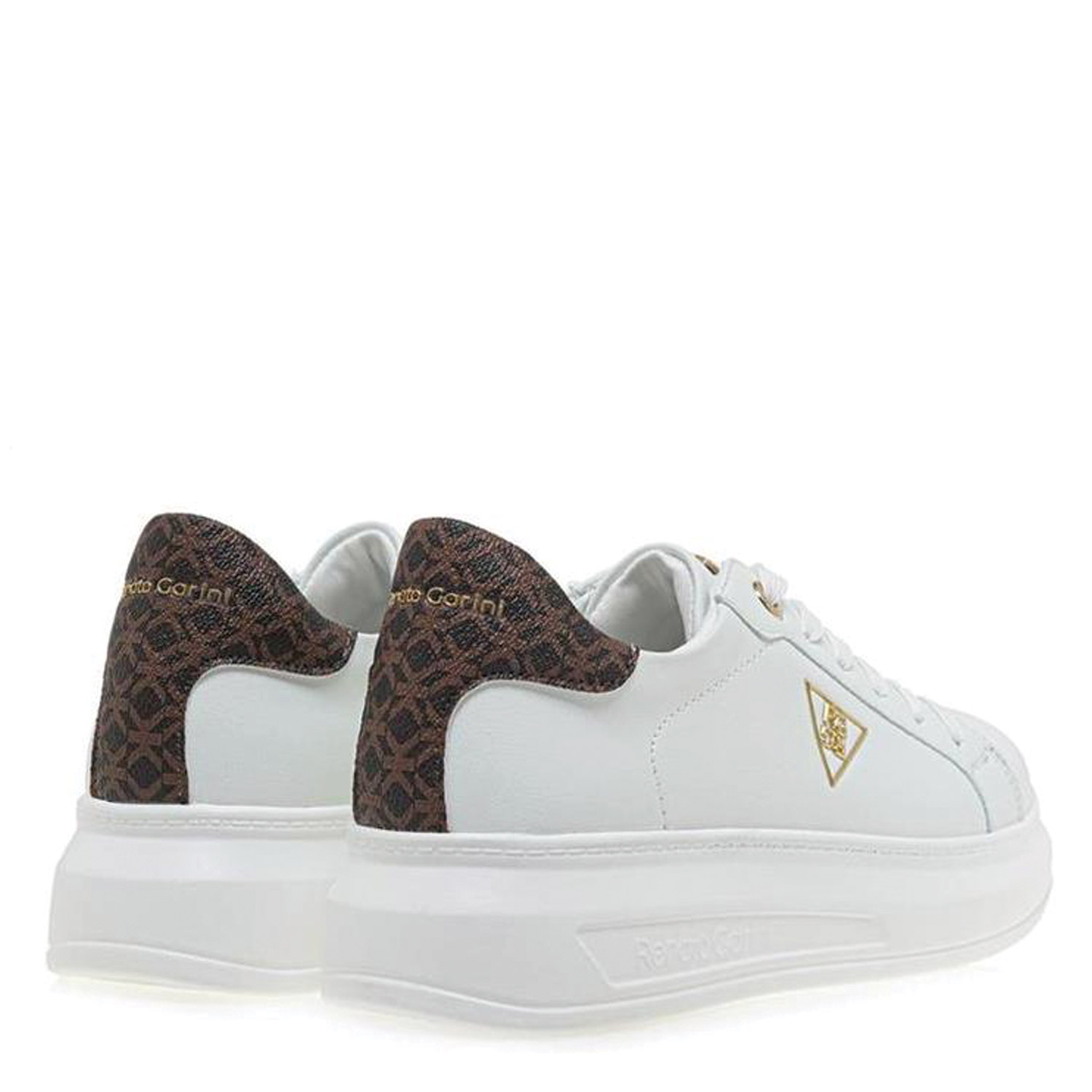 Renato Garini γυναικείο sneaker, σε λευκό-καφέ χρώμα, κατασκευασμένο από οικολογικό δέρμα. Ύψος σόλας 4εκ.