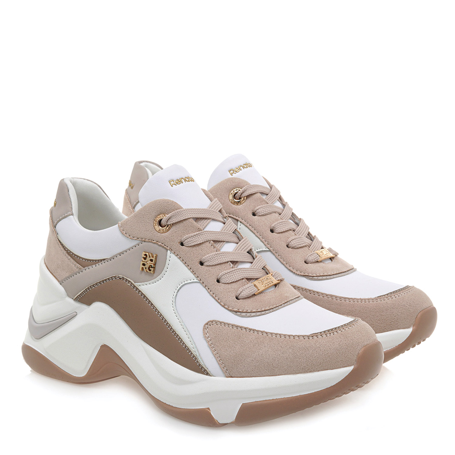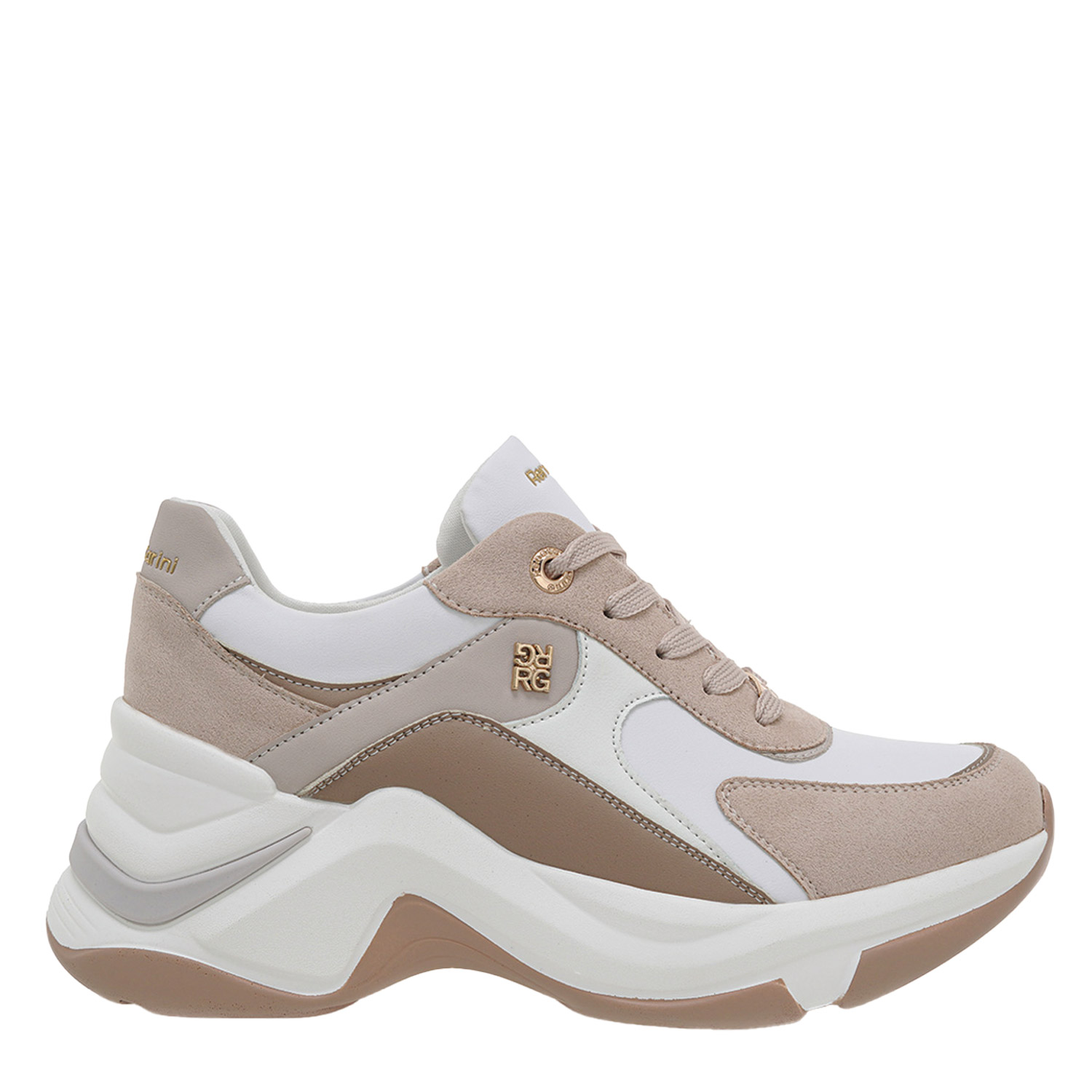 Renato Garini γυναικείο sneaker, σε λευκό-πούρο χρώμα, κατασκευασμένο από οικολογικό δέρμα. Ύψος τακουνιού 7εκ.