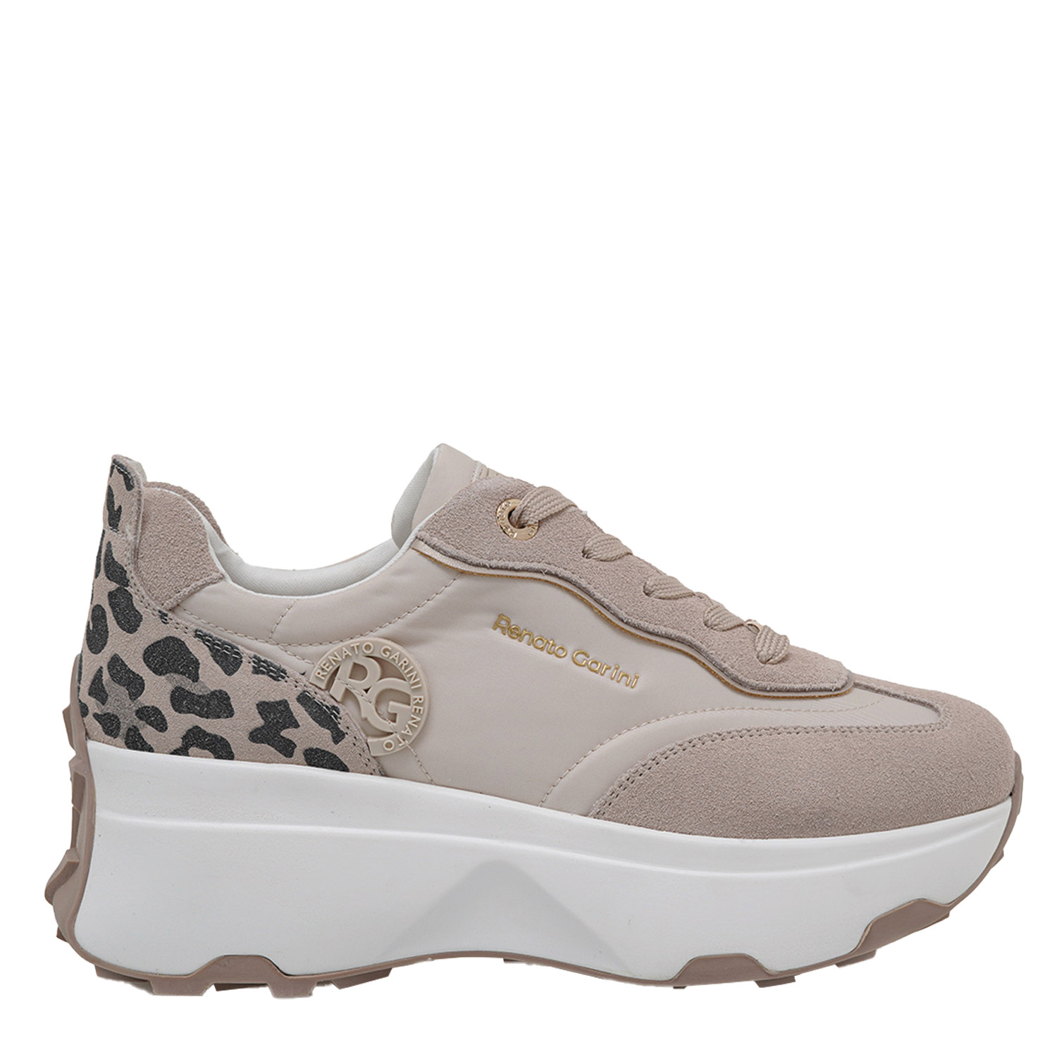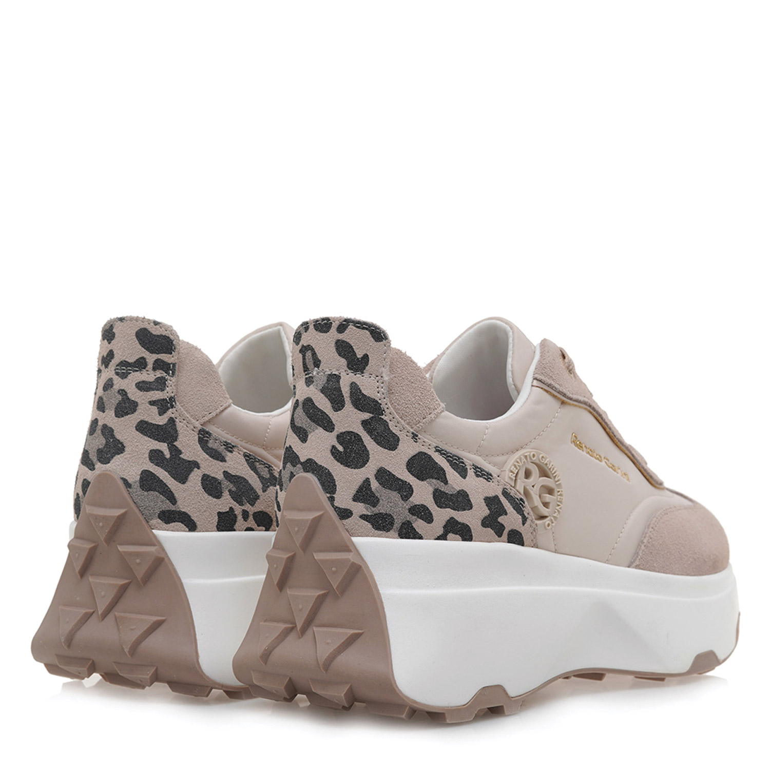 Renato Garini γυναικείο sneaker, σε μπεζ-λεοπάρ χρώμα, κατασκευασμένο από οικολογικό δέρμα. Ύψος σόλας 6.5εκ.