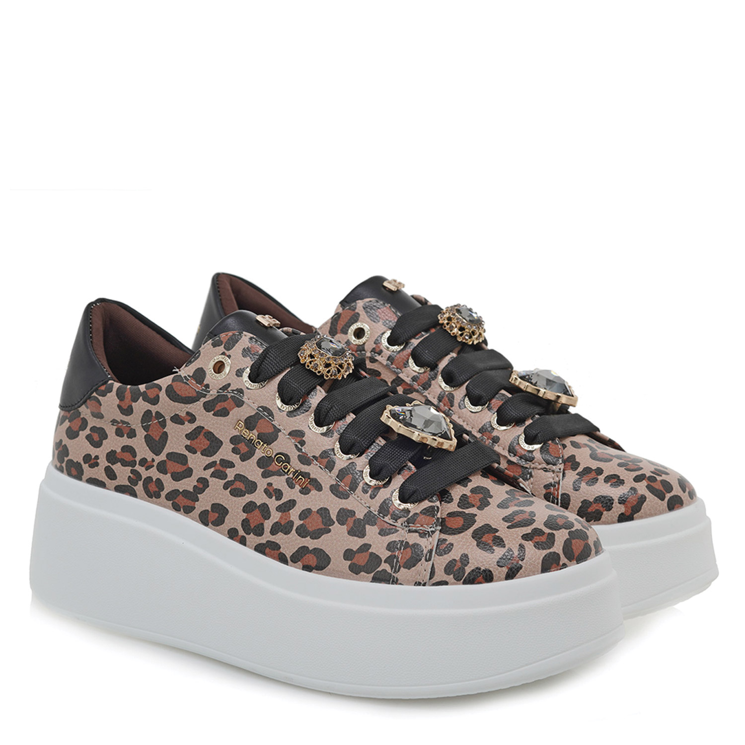 Renato Garini γυναικείο sneaker, σε λεοπάρ χρώμα, κατασκευασμένο από οικολογικό δέρμα. Ύψος σόλας 5.5εκ.