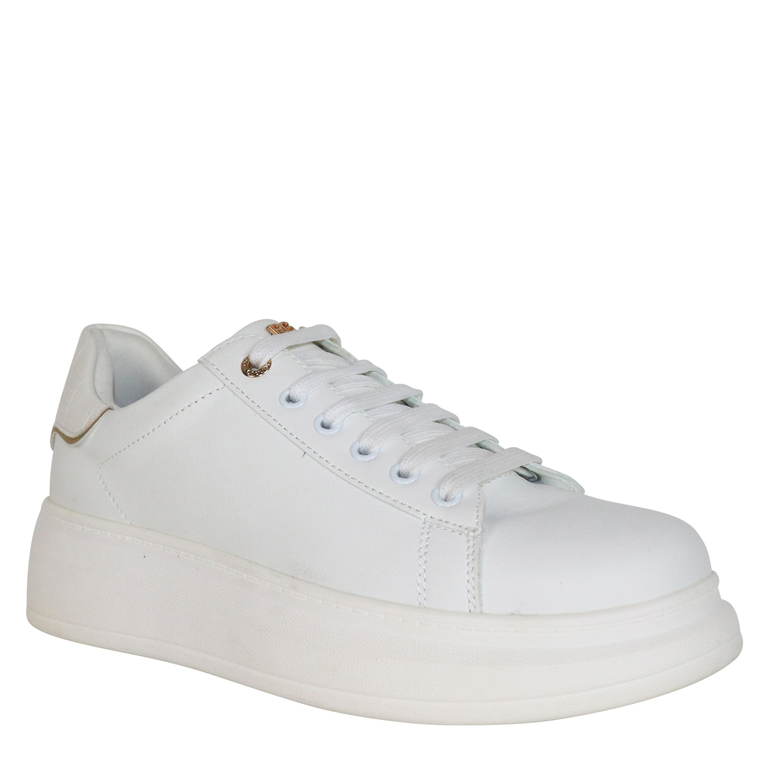 Renato Garini γυναικείο sneaker, σε λευκό χρώμα, κατασκευασμένο από οικολογικό δέρμα. Ύψος σόλας 4εκ.