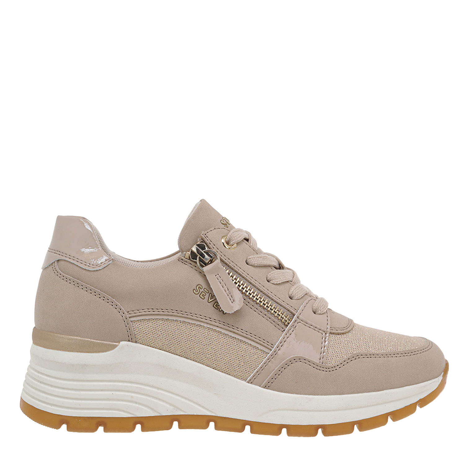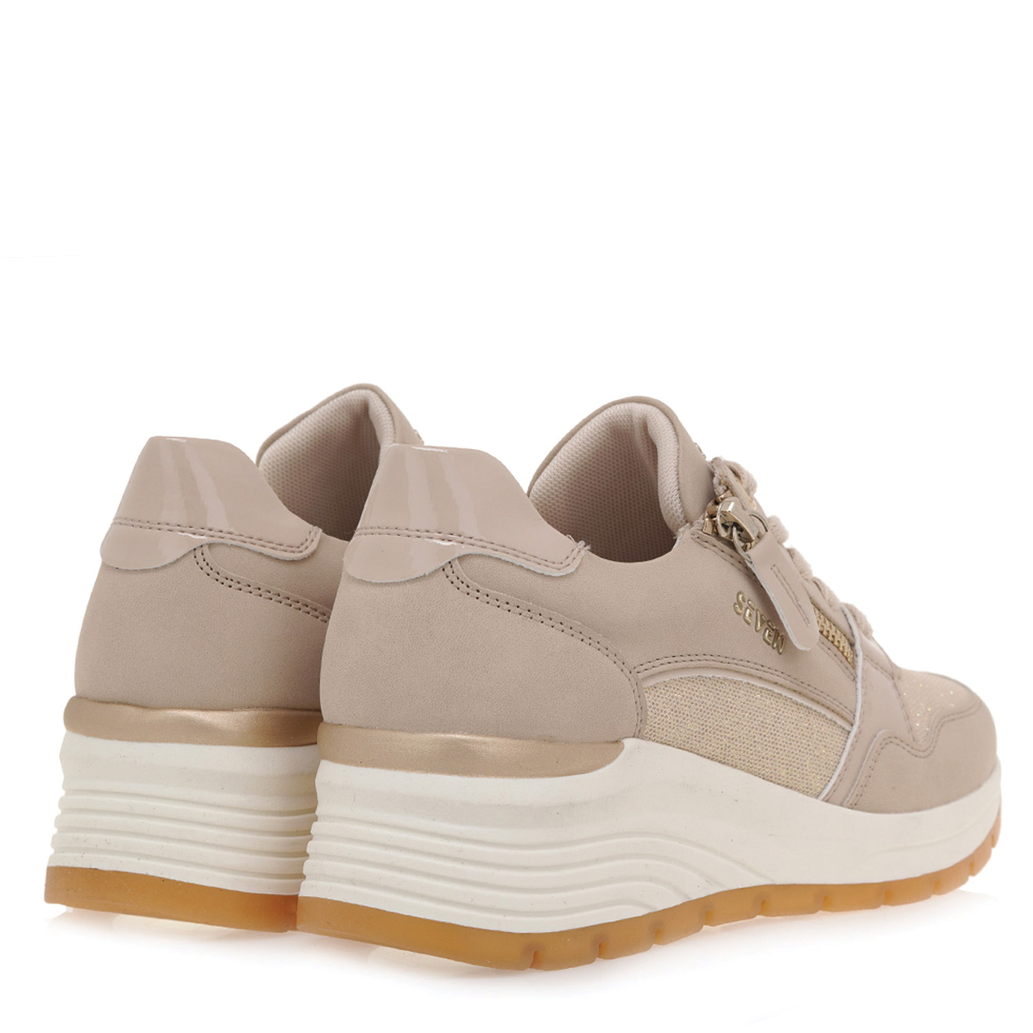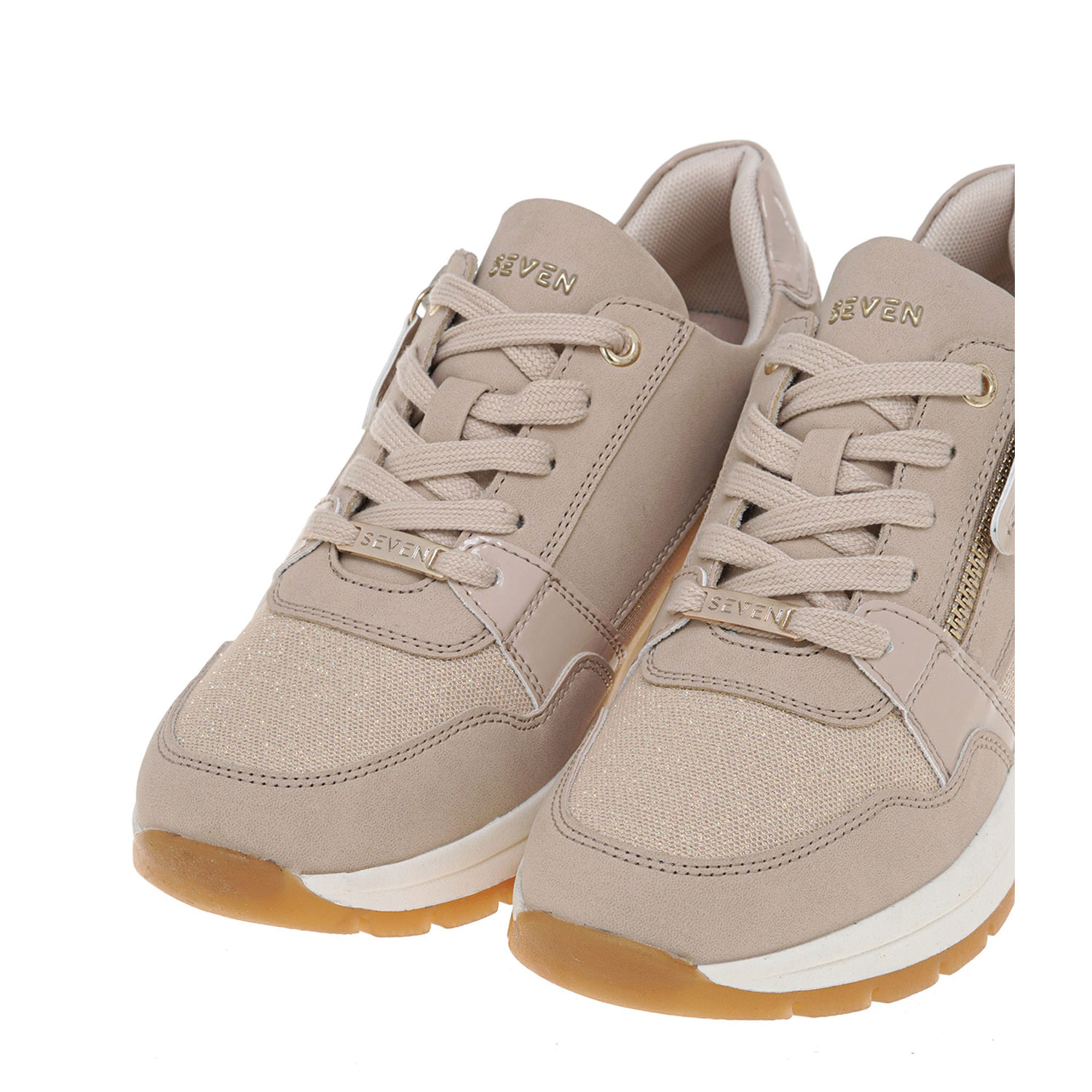 Seven γυναικείο sneaker, σε μπεζ χρώμα, κατασκευασμένο από οικολογικό δέρμα και ύφασμα. Ύψος σόλας 5εκ.
