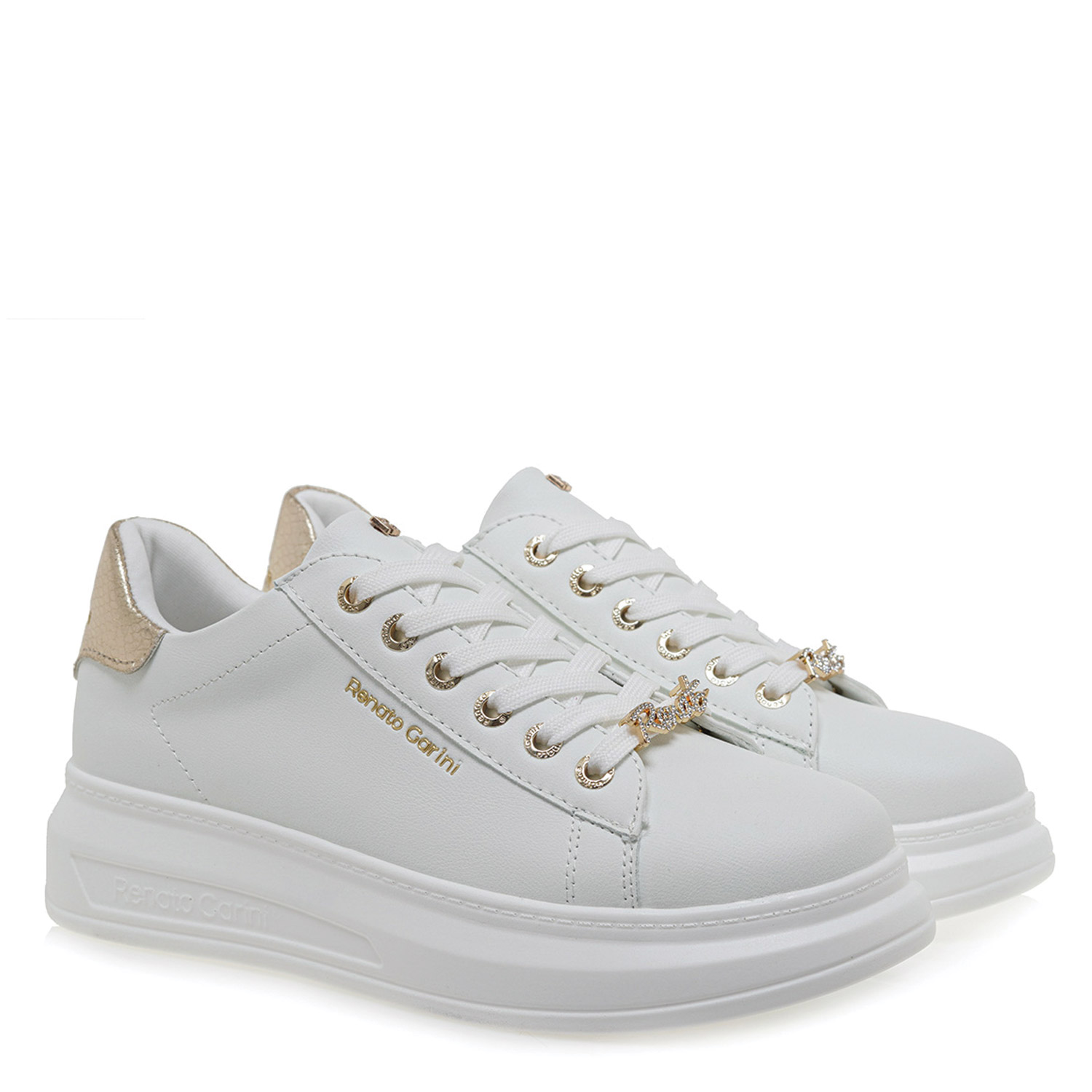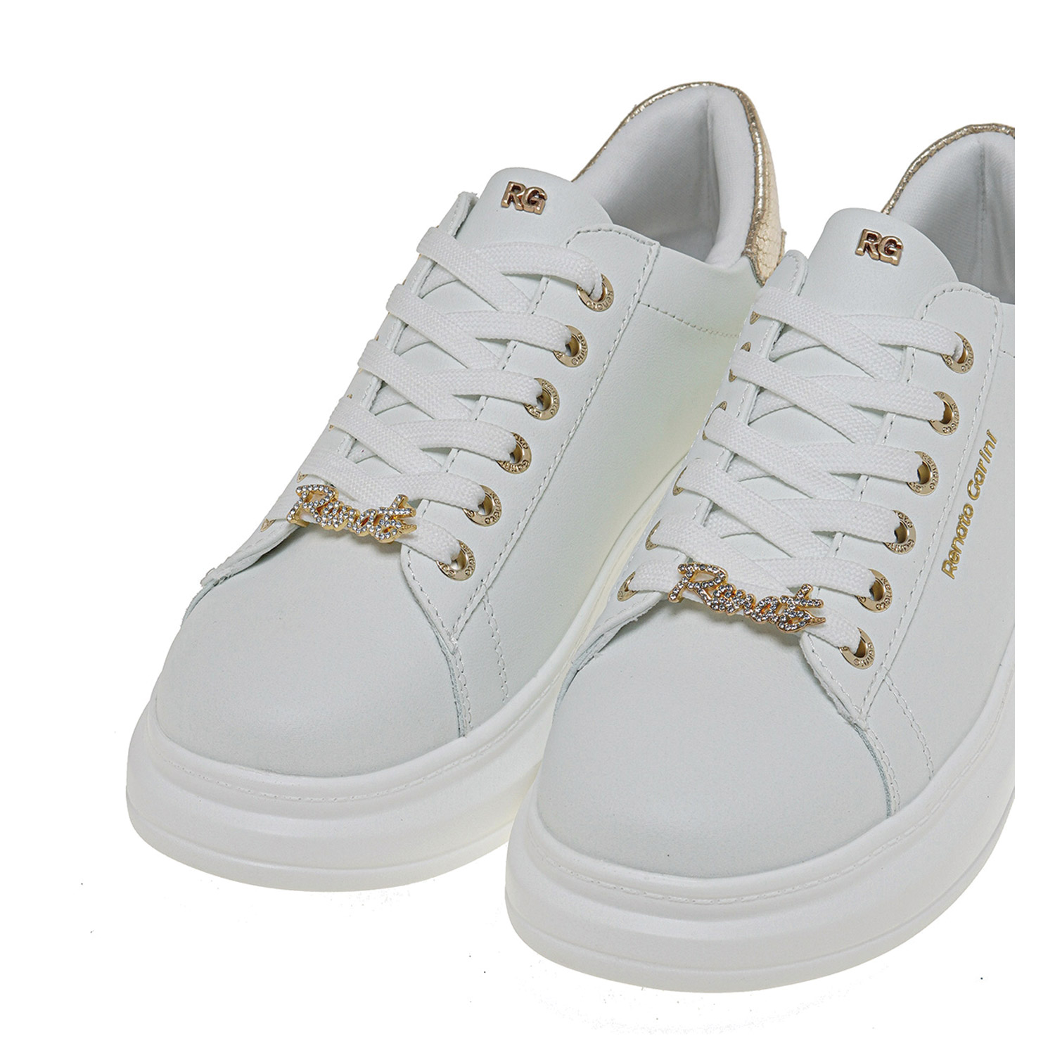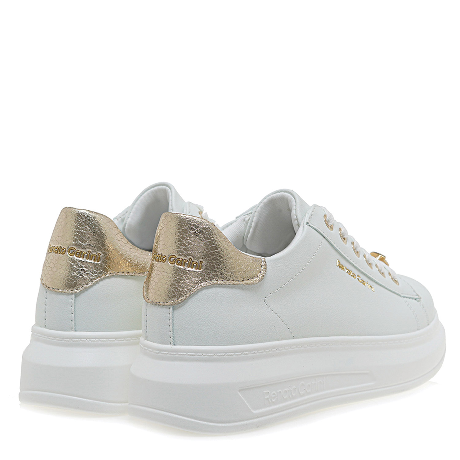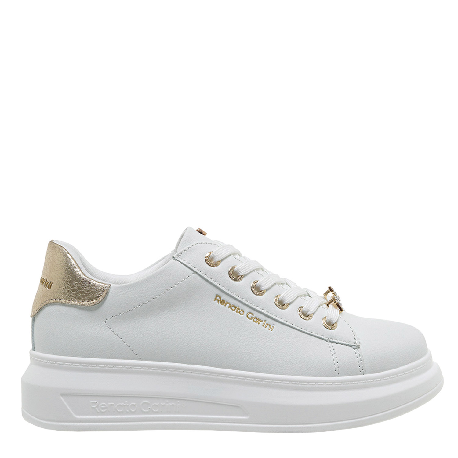 Renato Garini γυναικείο sneaker, σε λευκό-πλατίνα χρώμα, κατασκευασμένο από οικολογικό δέρμα. Ύψος σόλας 4.5εκ.
