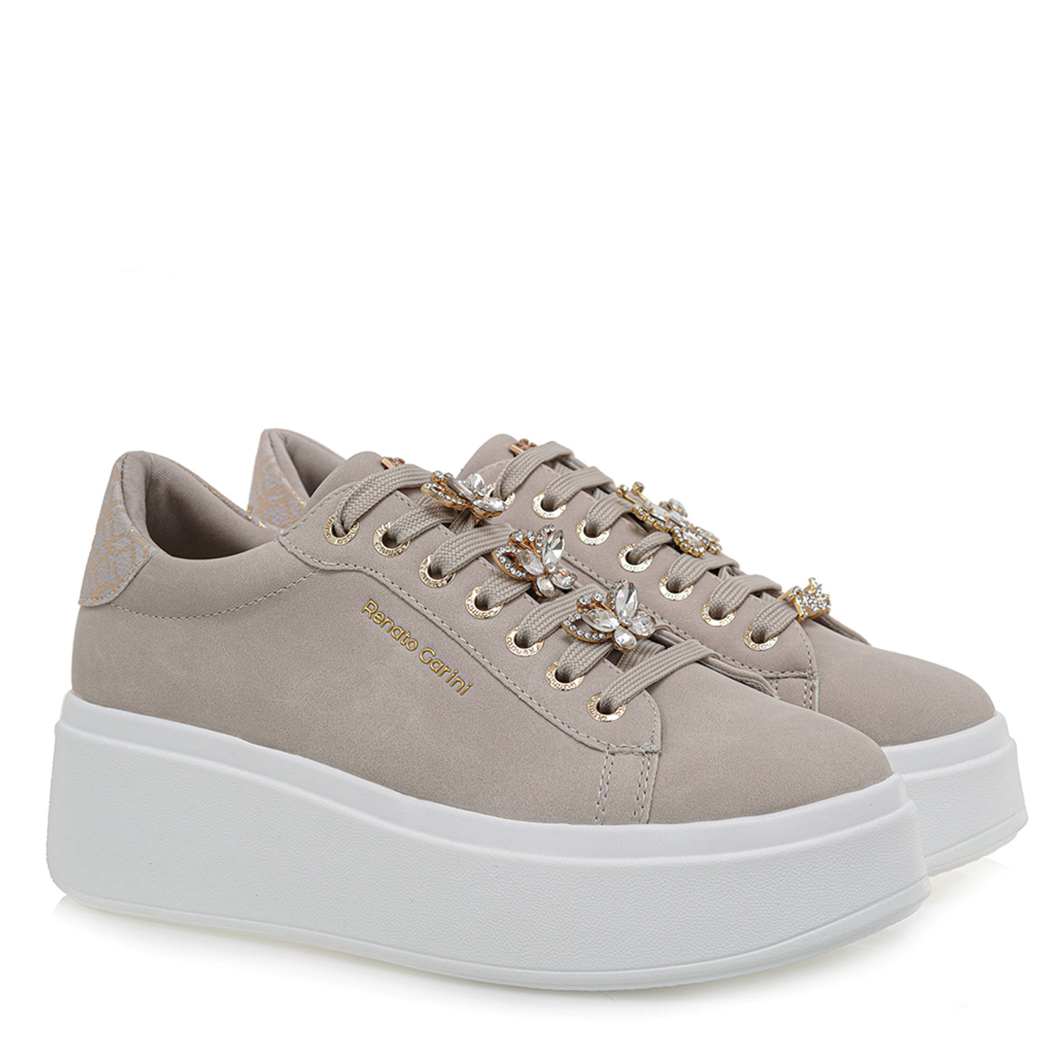 Renato Garini γυναικείο sneaker, σε off-white χρώμα, κατασκευασμένο από οικολογικό δέρμα. Ύψος σόλας 5.5εκ.