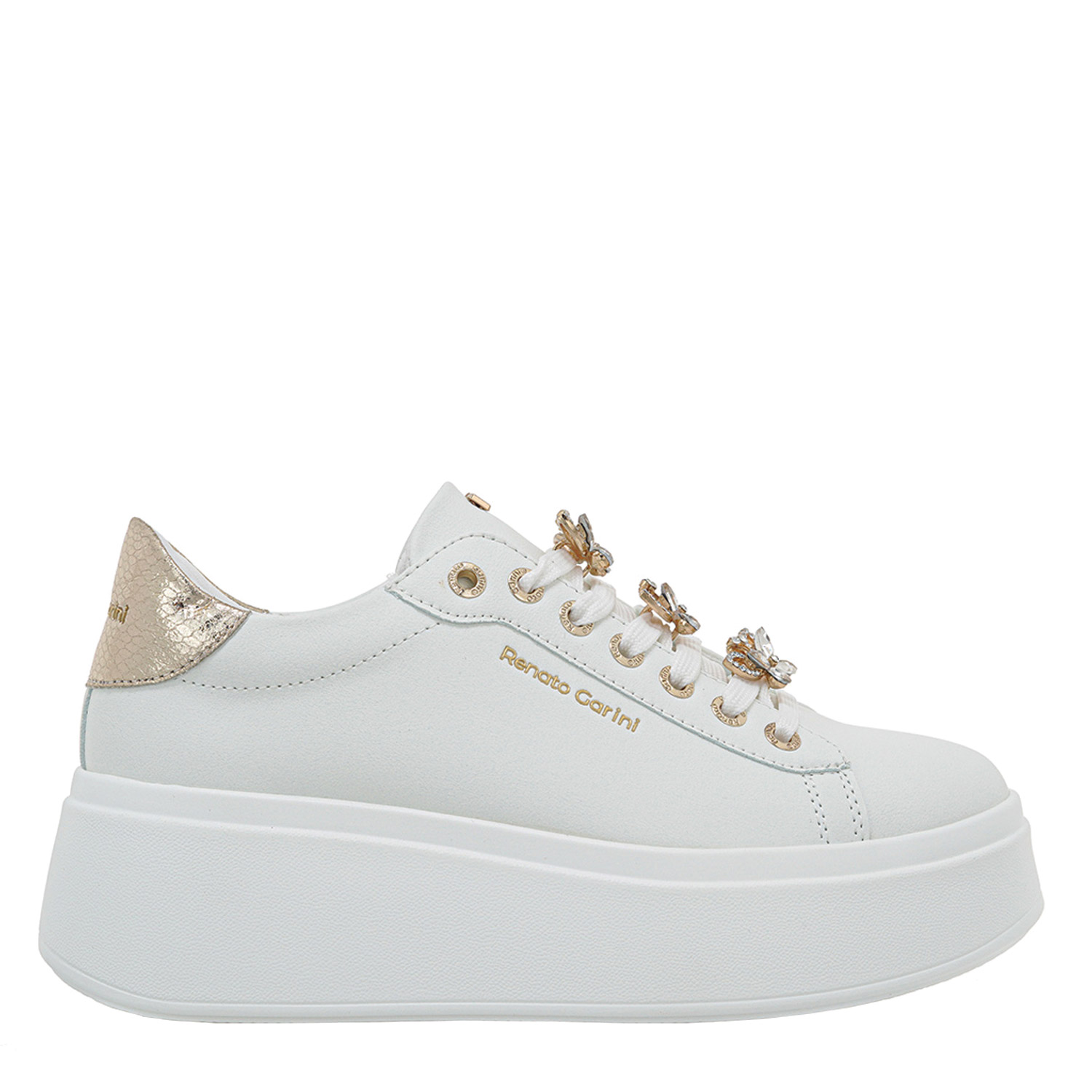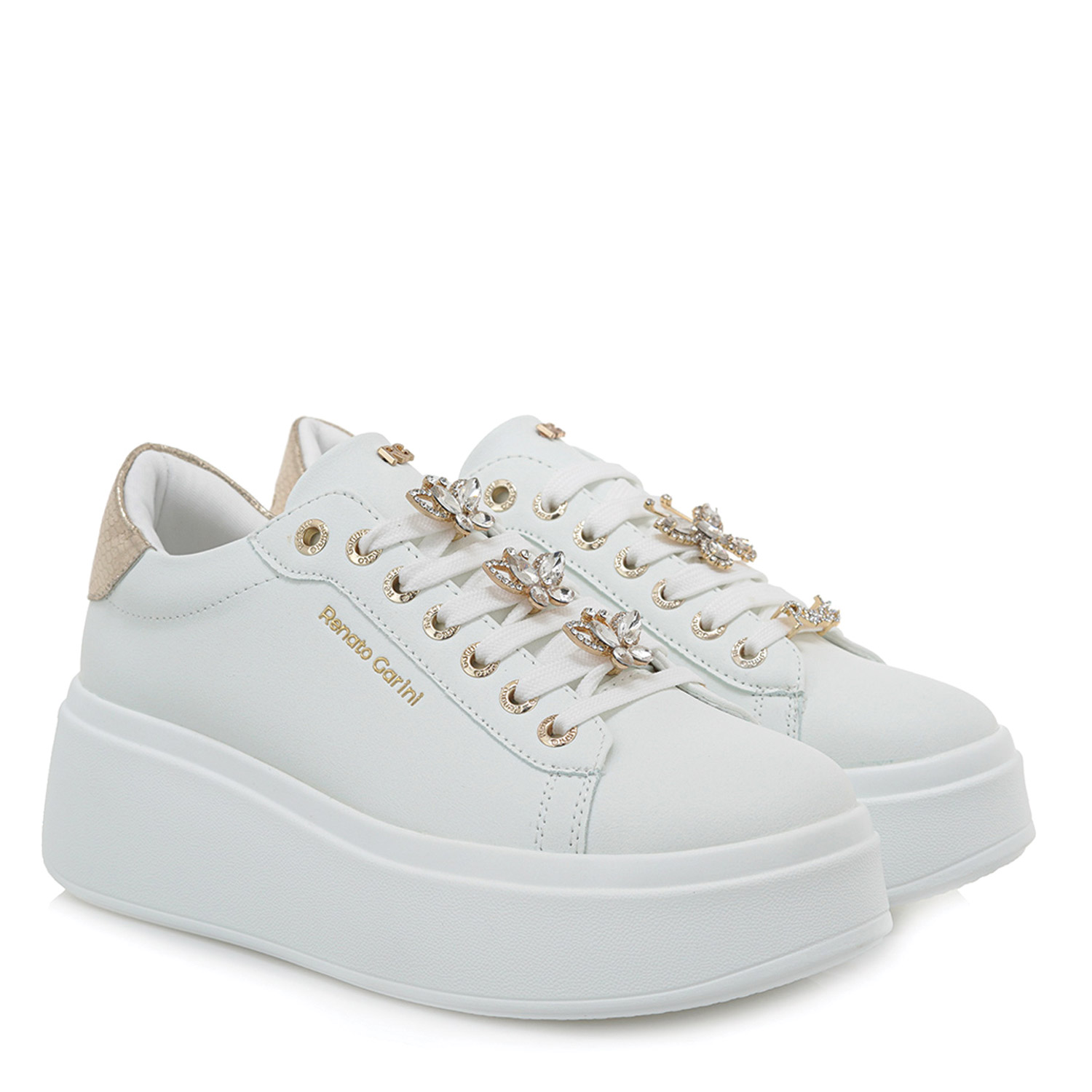 Renato Garini γυναικείο sneaker, σε λευκό χρώμα, κατασκευασμένο από οικολογικό δέρμα. Ύψος σόλας 5.5εκ.