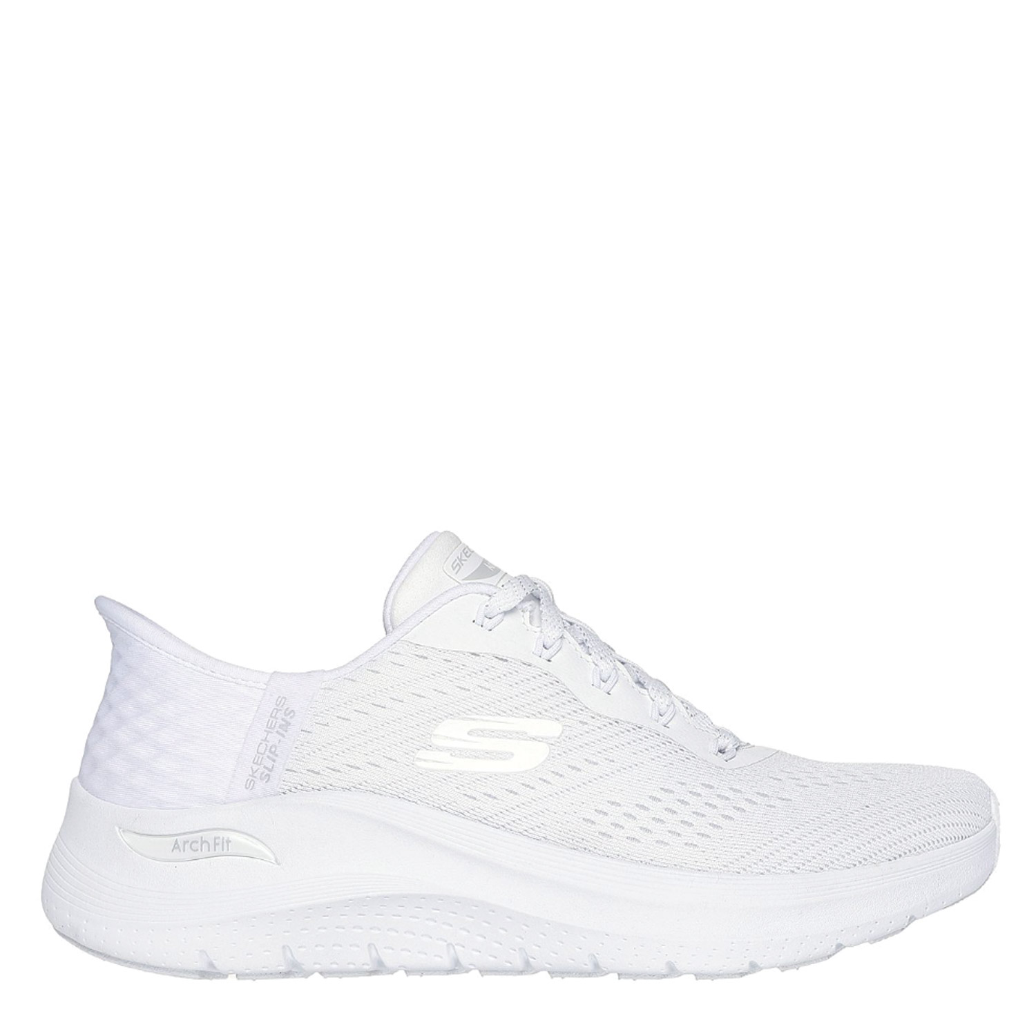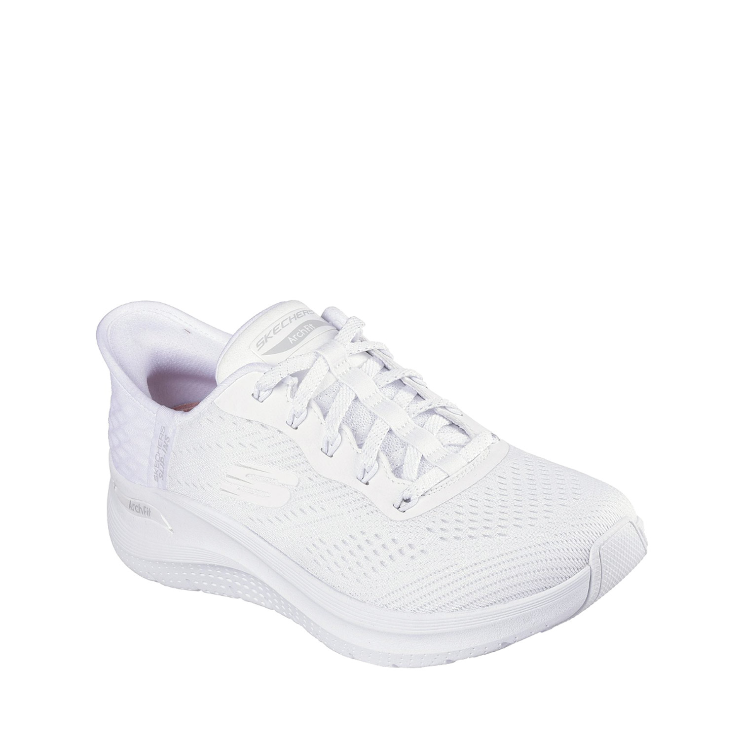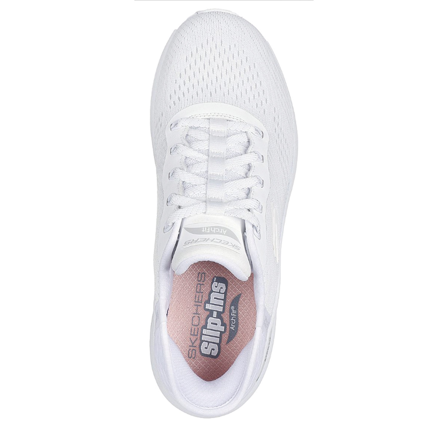 Skechers γυναικείο sneaker, σε λευκό χρώμα, κατασκευασμένο από ύφασμα, με ανατομικό πατάκι. Ύψος σόλας 4εκ.