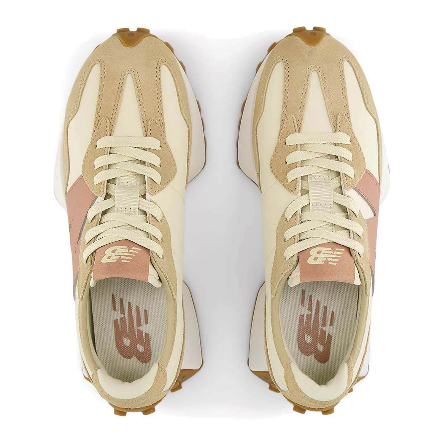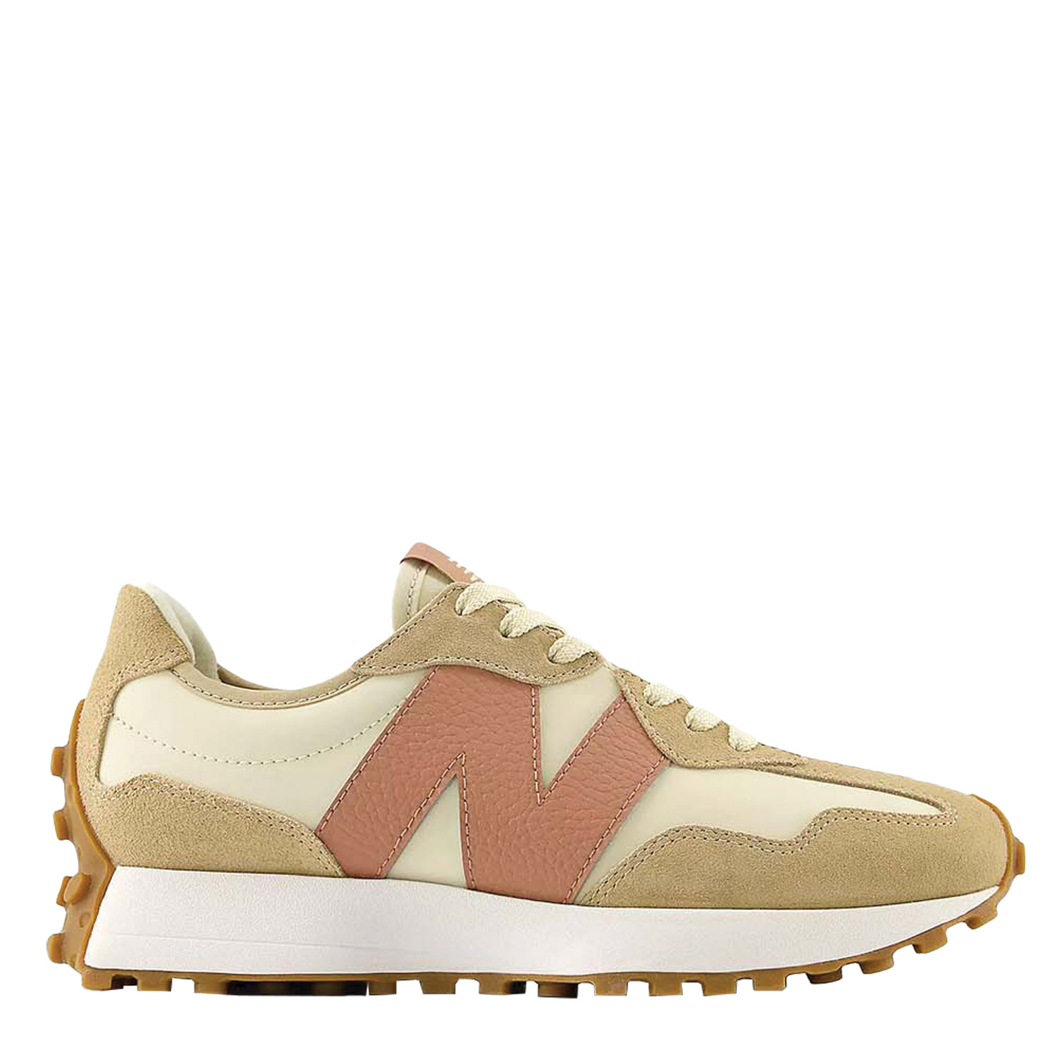 New Balance 327 γυναικείο sneaker, σε ταουπέ χρώμα, κατασκευασμένο από ύφασμα με λεπτομέρειες δέρματος. Ύψος σόλας 2.5εκ.