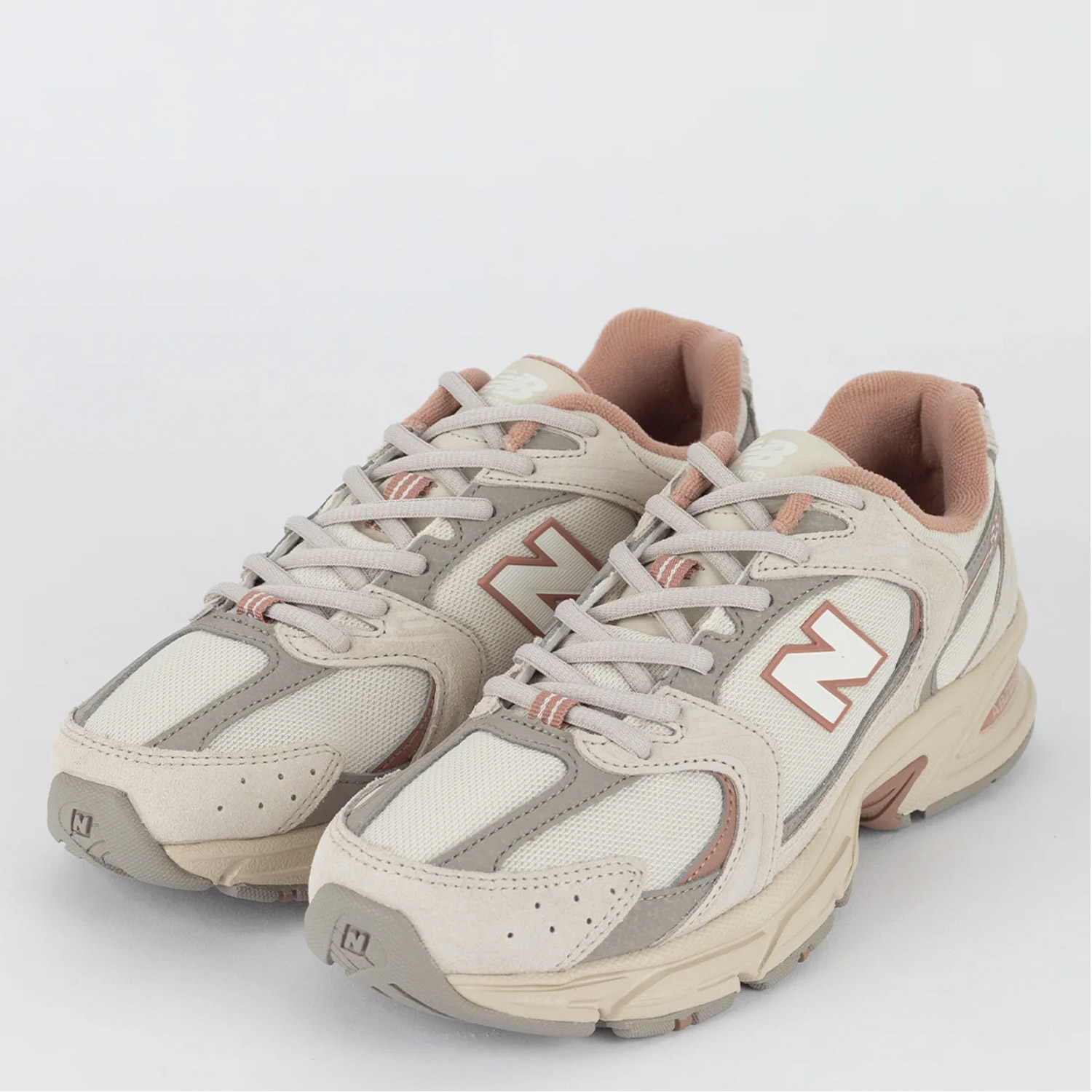 New Balance 530 sneaker σε μπεζ-ροζ χρώμα, κατασκευασμένο από ύφασμα και οικολογικό δέρμα. Ύψος σόλας 4.5εκ.