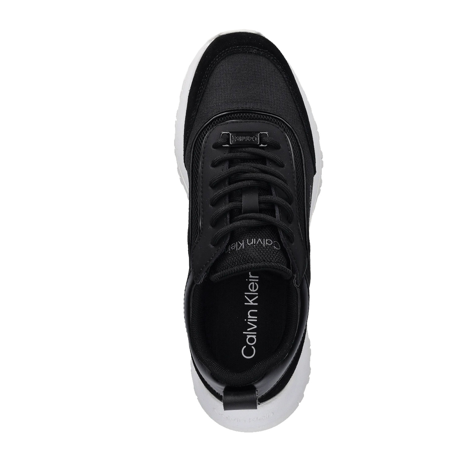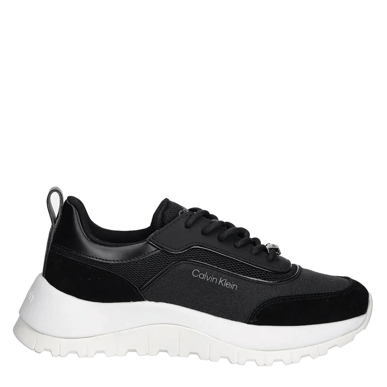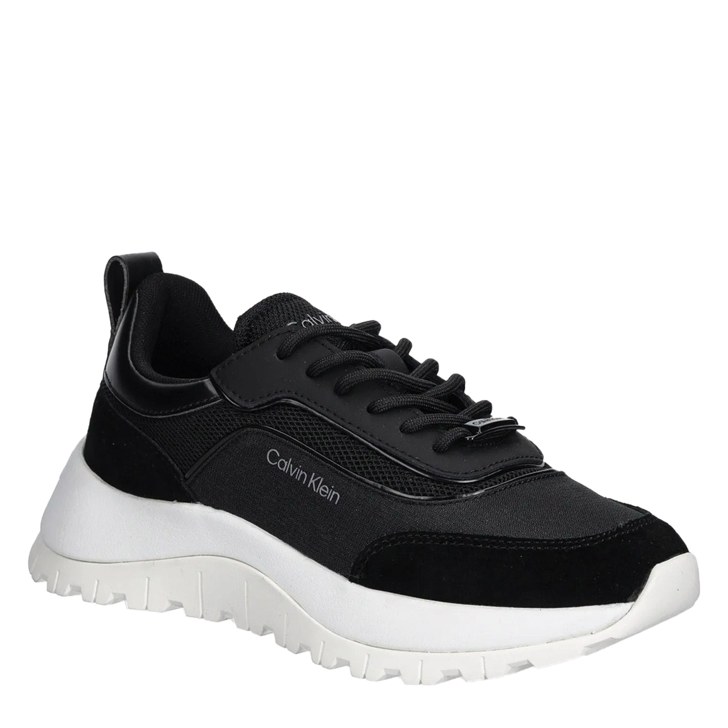 Calvin Klein γυναικείο sneaker, σε μαύρο χρώμα, κατασκευασμένο από δέρμα και ύφασμα. Ύψος τακουνιού 4εκ.