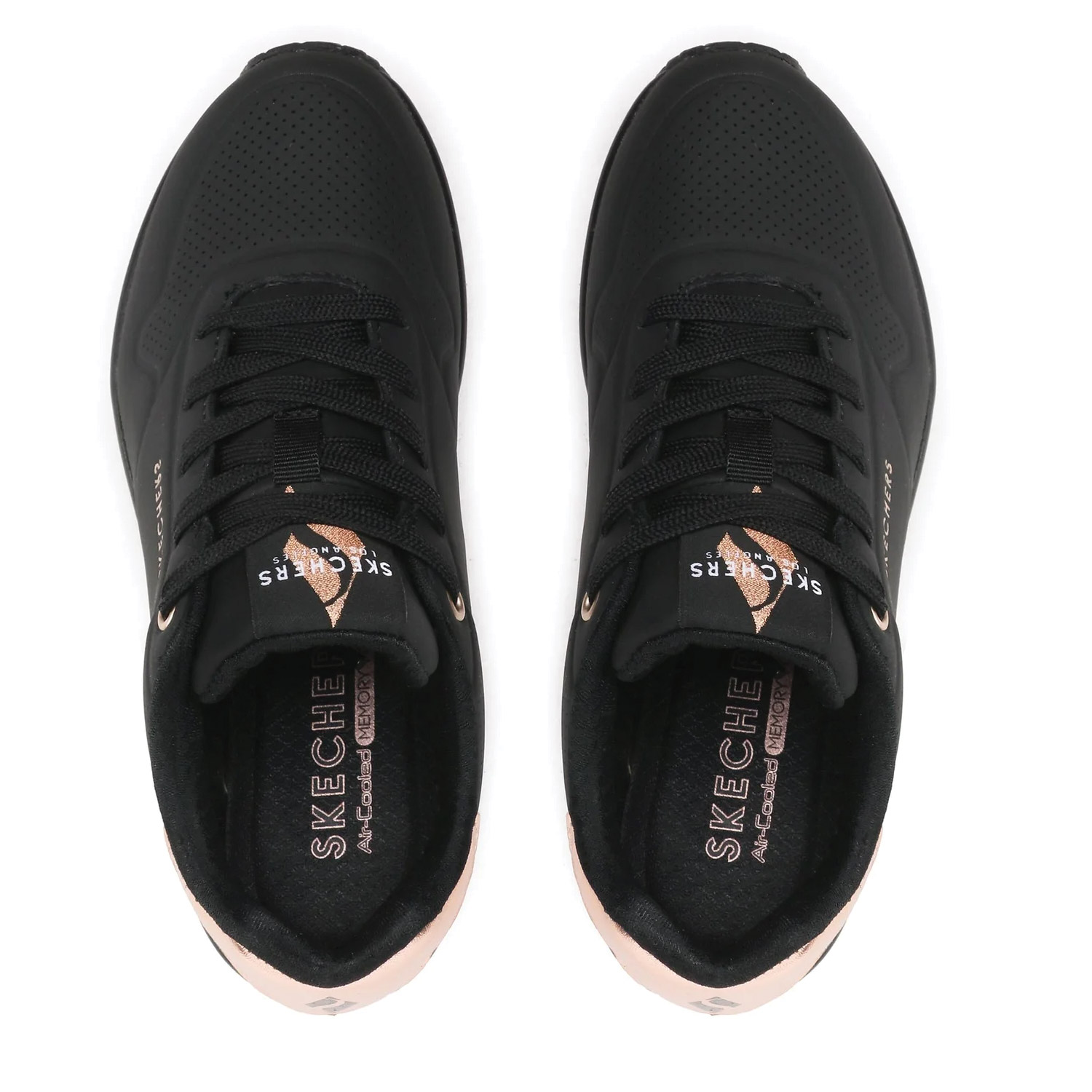 Skechers γυναικείο sneaker, σε μαύρο χρώμα, κατασκευασμένο από οικολογικό δέρμα, με ανατομικό πάτο από memory foam. Ύψος σόλας 3εκ.