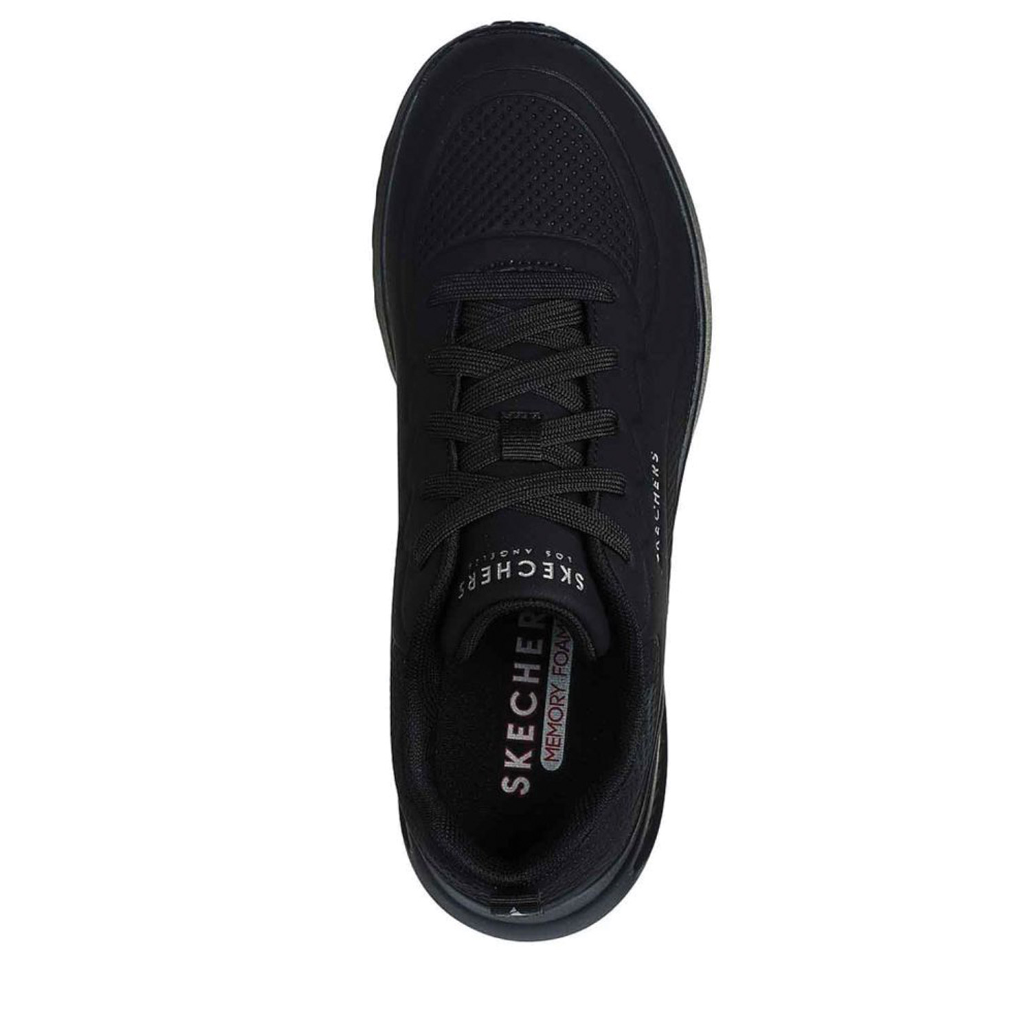 Skechers γυναικείο sneaker, σε μαύρο χρώμα, κατασκευασμένο από οικολογικό δέρμα, με ανατομικό πάτο, από memory foam. Ύψος σόλας 4εκ.