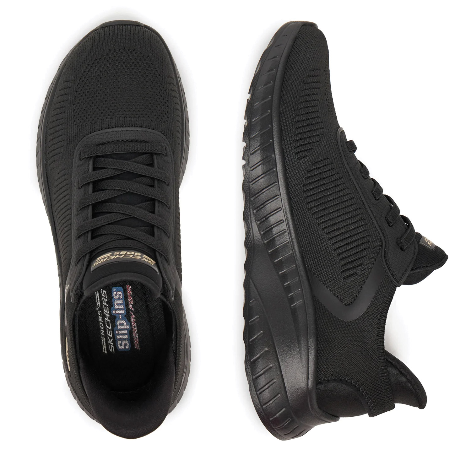 Skechers γυναικείο sneaker, σε μαύρο χρώμα, κατασκευασμένο από ύφασμα, με ανατομικό πάτο. Ύψος σόλας 3εκ.