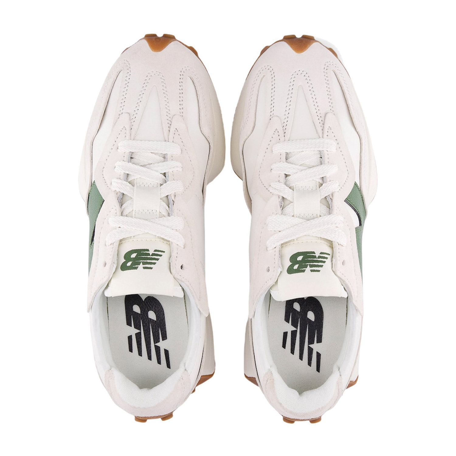 New Balance 327 γυναικείο sneaker, σε πράσινο-λευκό χρώμα, κατασκευασμένο από ύφασμα και καστόρι, με ανατομικό πάτο. Ύψος σόλας 3εκ.