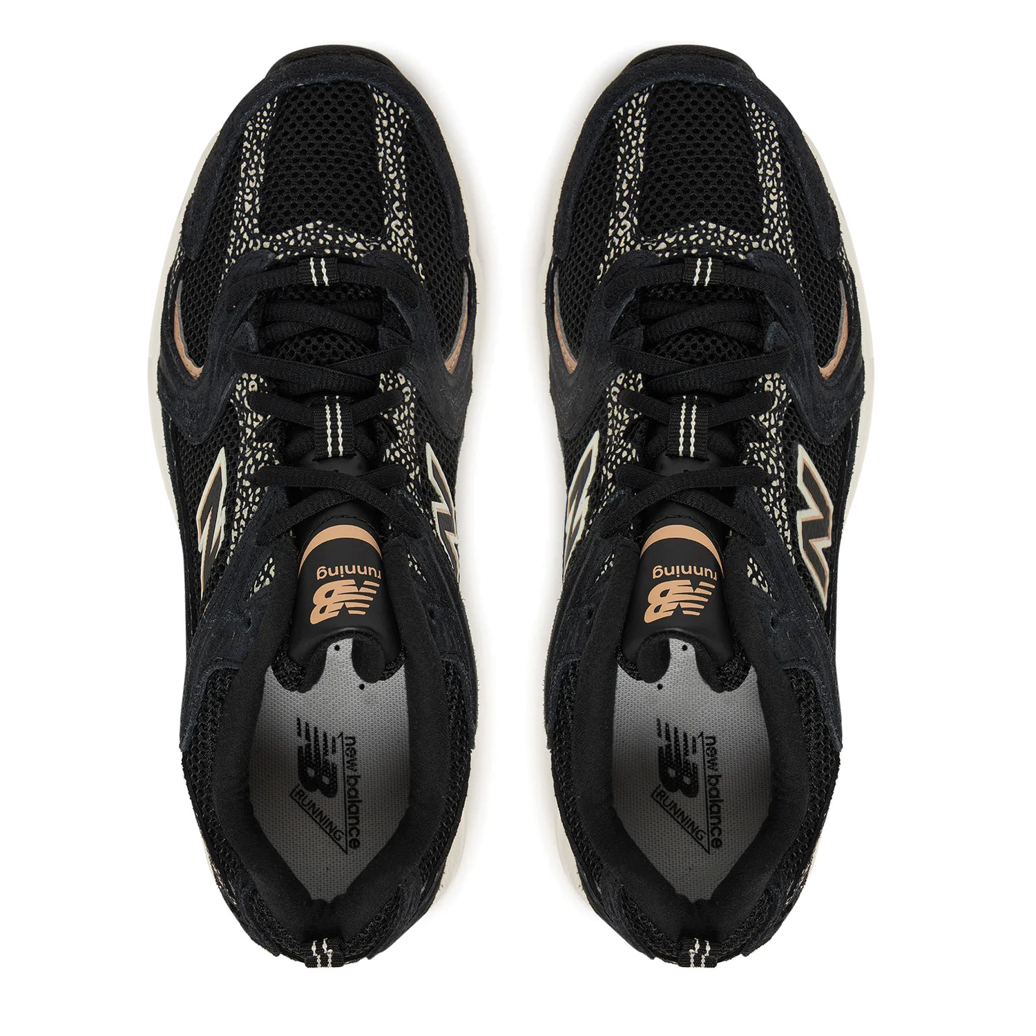 New Balance 530 γυναικείο sneaker, σε μαύρο-λεοπάρ χρώμα, κατασκευασμένο από ύφασμα και οικολογικό δέρμα. Ύψος σόλας 4.5εκ.