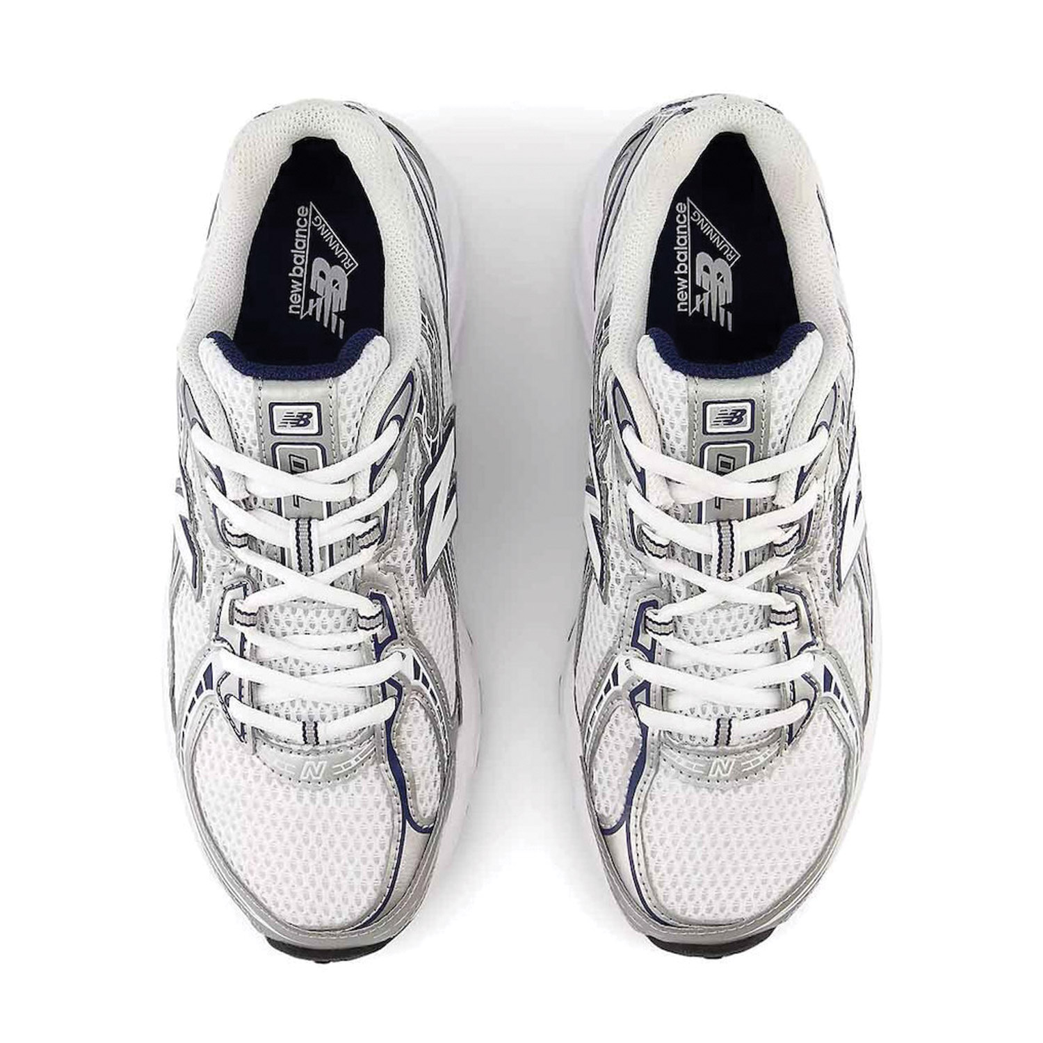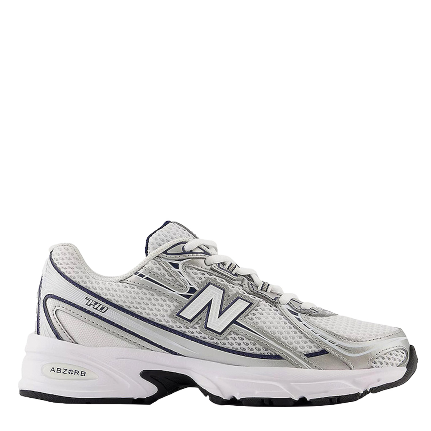 New Balance 740 γυναικείο sneaker  σε λευκό-ασημί χρώμα κατασκευασμένο από ύφασμα και οικολογικό δέρμα με ανατομικό πατάκι. Ύψος σόλας 4εκ.