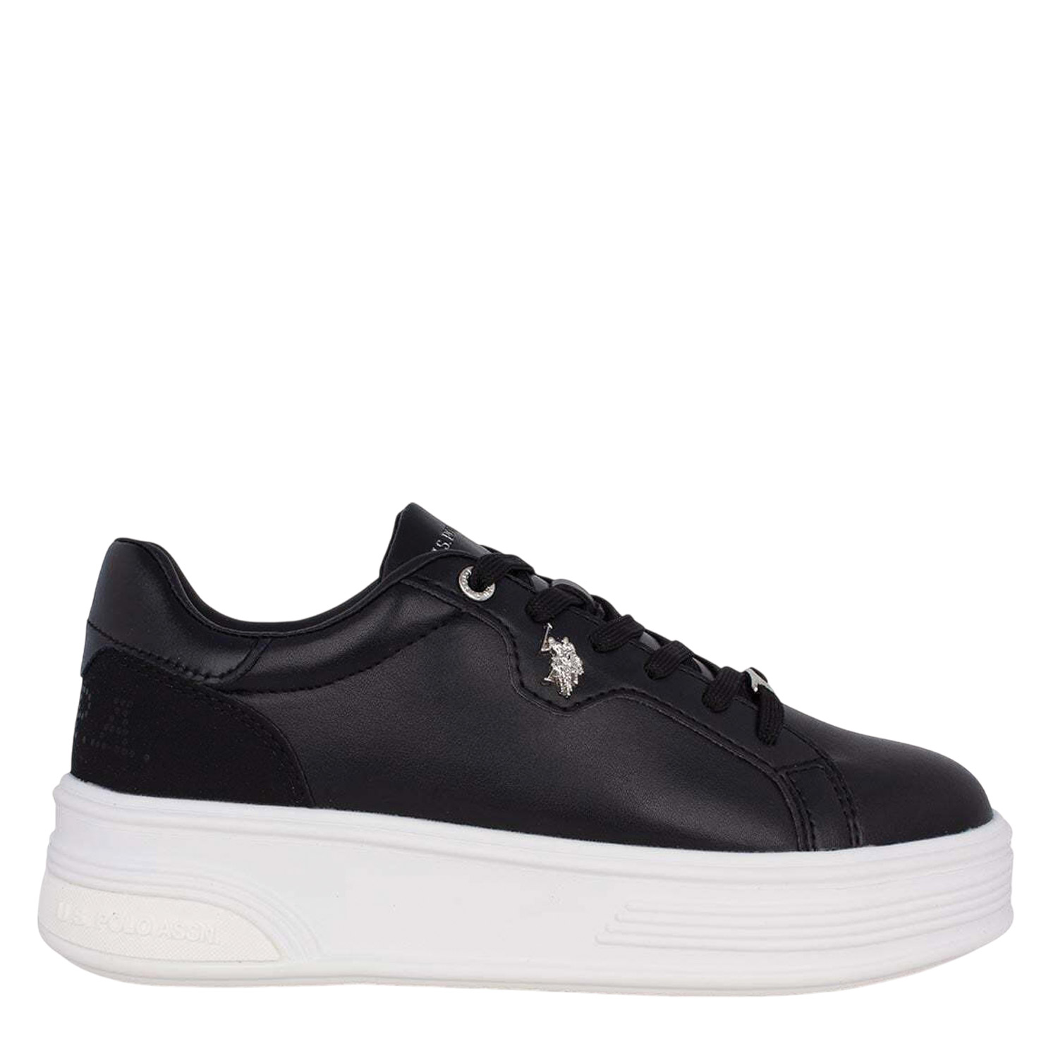 U.S. Polo ASSN γυναικείο sneaker, σε μαύρο χρώμα, κατασκευασμένο από οικολογικό δέρμα. Ύψος σόλας 4εκ.