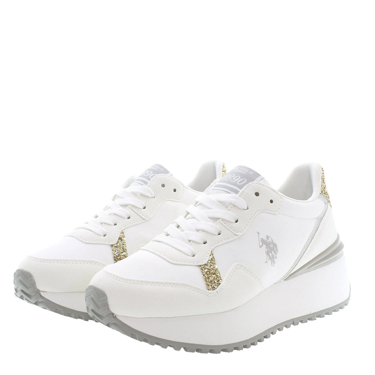 U.S. Polo ASSN γυναικείο sneaker, σε λευκό χρώμα, κατασκευασμένο από οικολογικό δέρμα. Ύψος τακουνιού 6εκ.