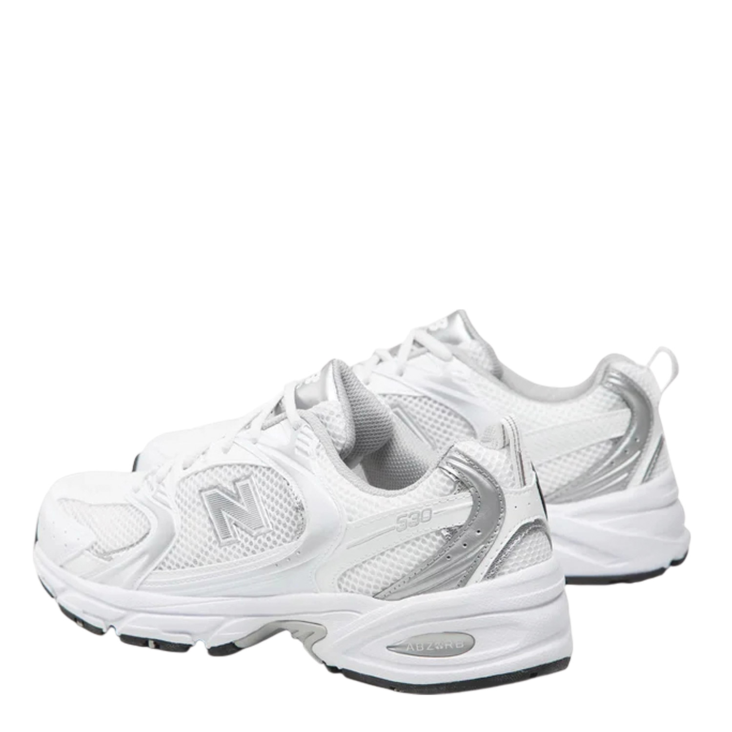 New Balance 530 γυναικείο sneaker σε λευκό ασημί χρώμα κατασκευασμένο από ύφασμα και οικολογικό δέρμα με ανατομικό πατάκι. Ύψος σόλας 4εκ.