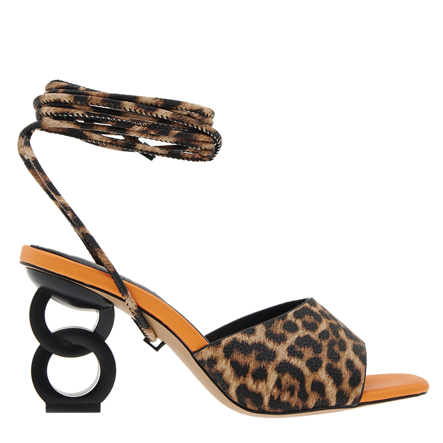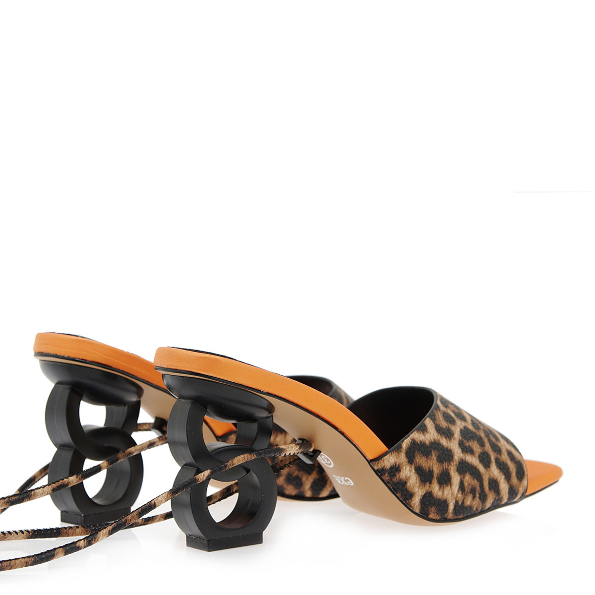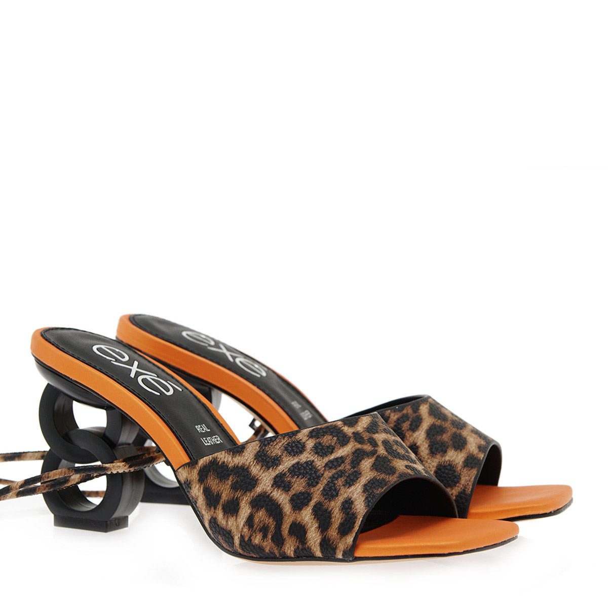 Exe γυναικείο πέδιλο σε λεοπάρ με πορτοκαλί χρώμα κατασκευασμένο από οικολογικό δέρμα, με δερμάτινο πατάκι. Ύψος σόλας 7.5εκ.