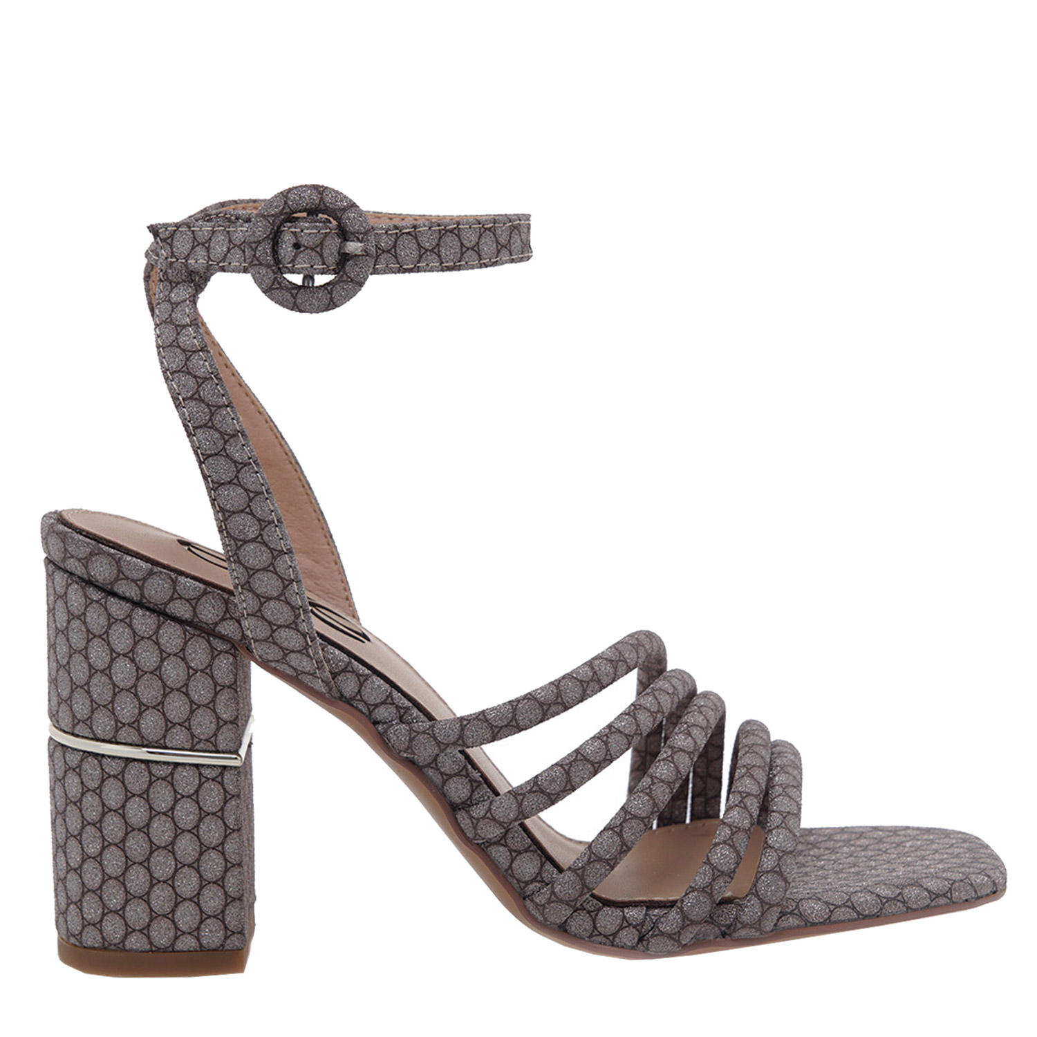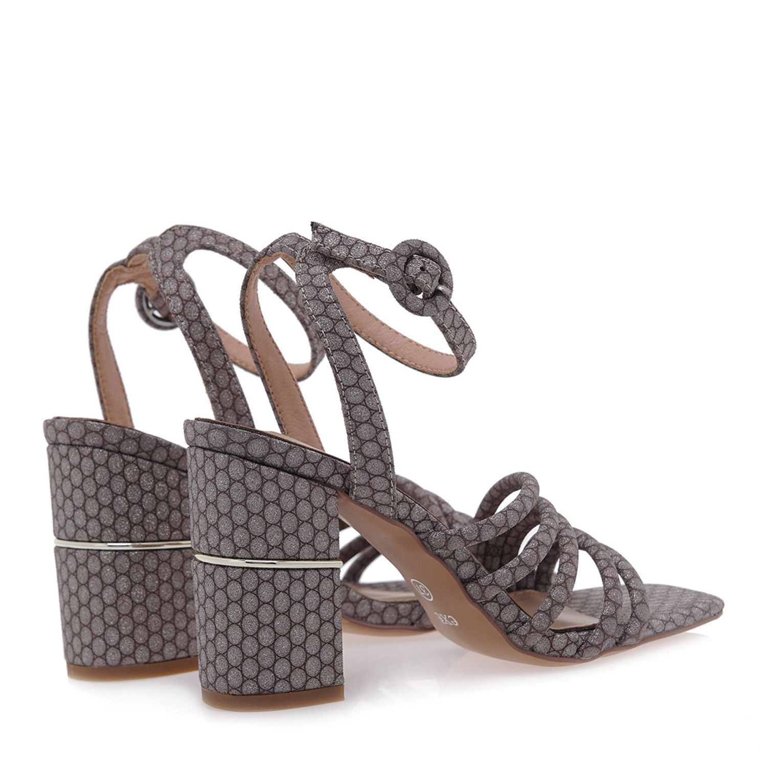 Exe γυναικείο πέδιλο σε ατσαλί χρώμα κατασκευασμένο από οικολογικό δέρμα με glitter. Ύψος τακουνιού 10εκ.