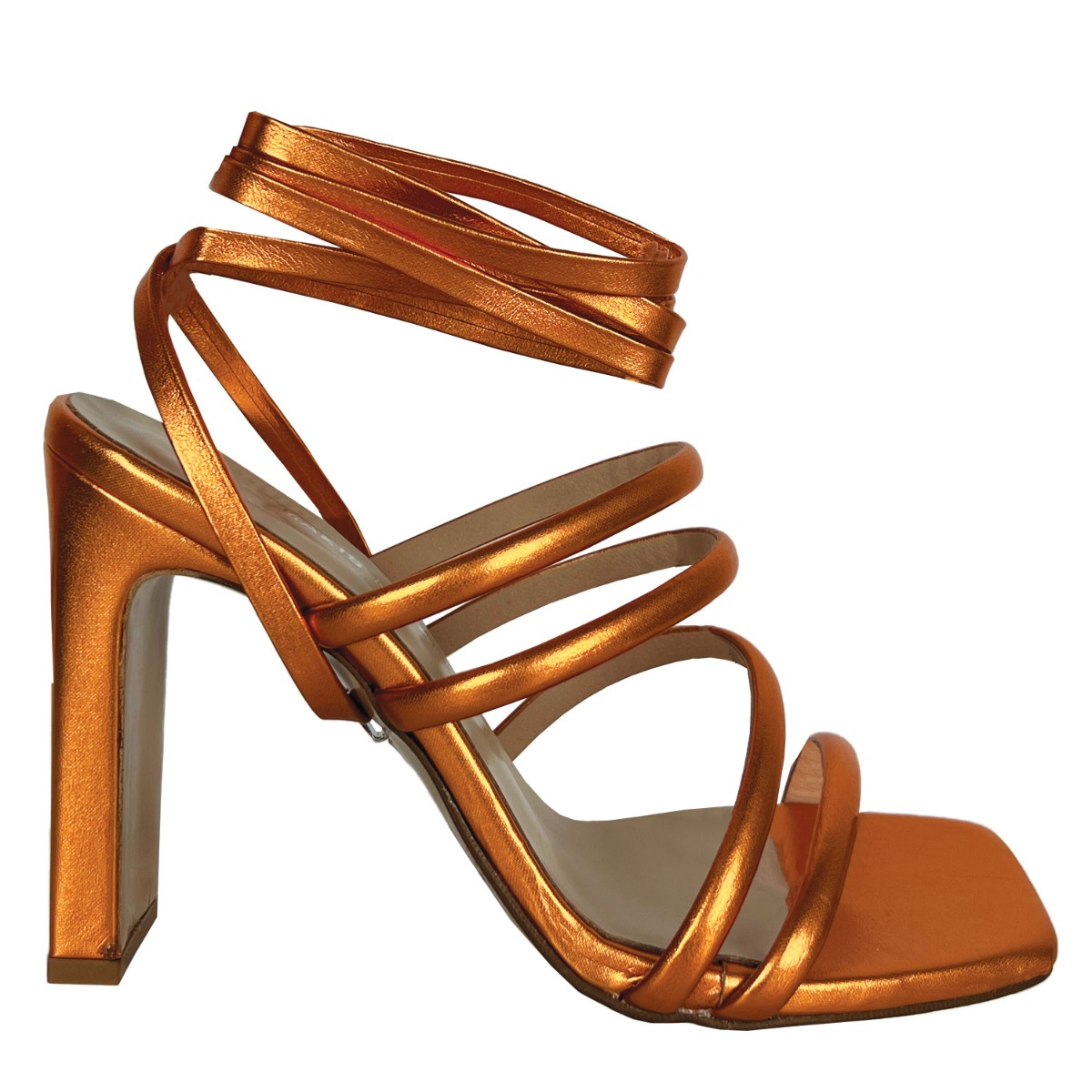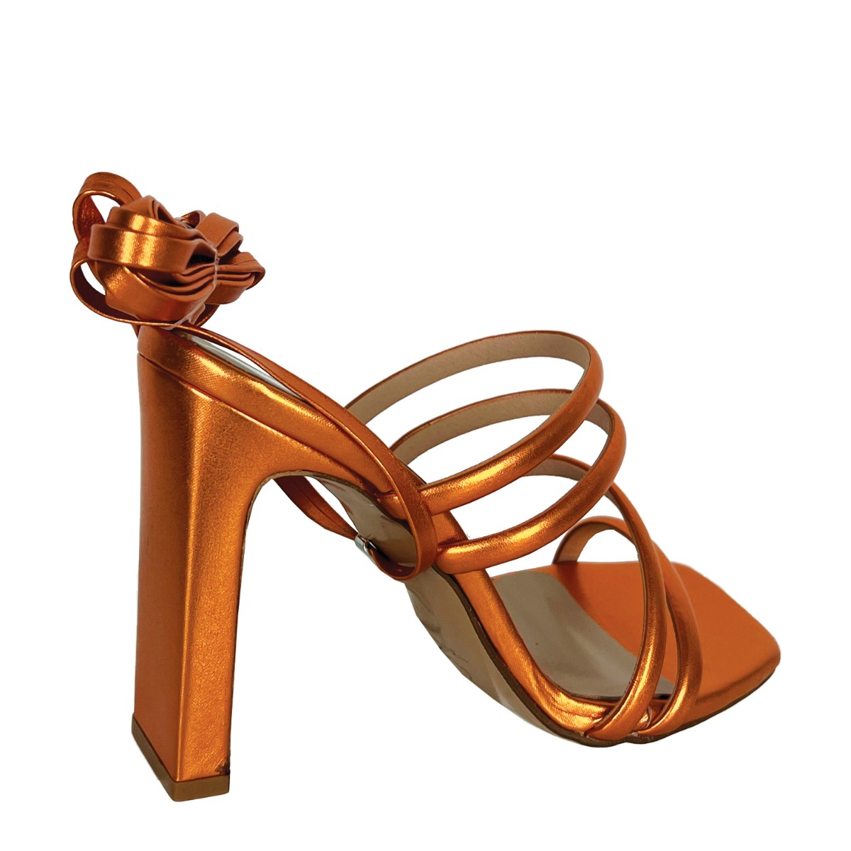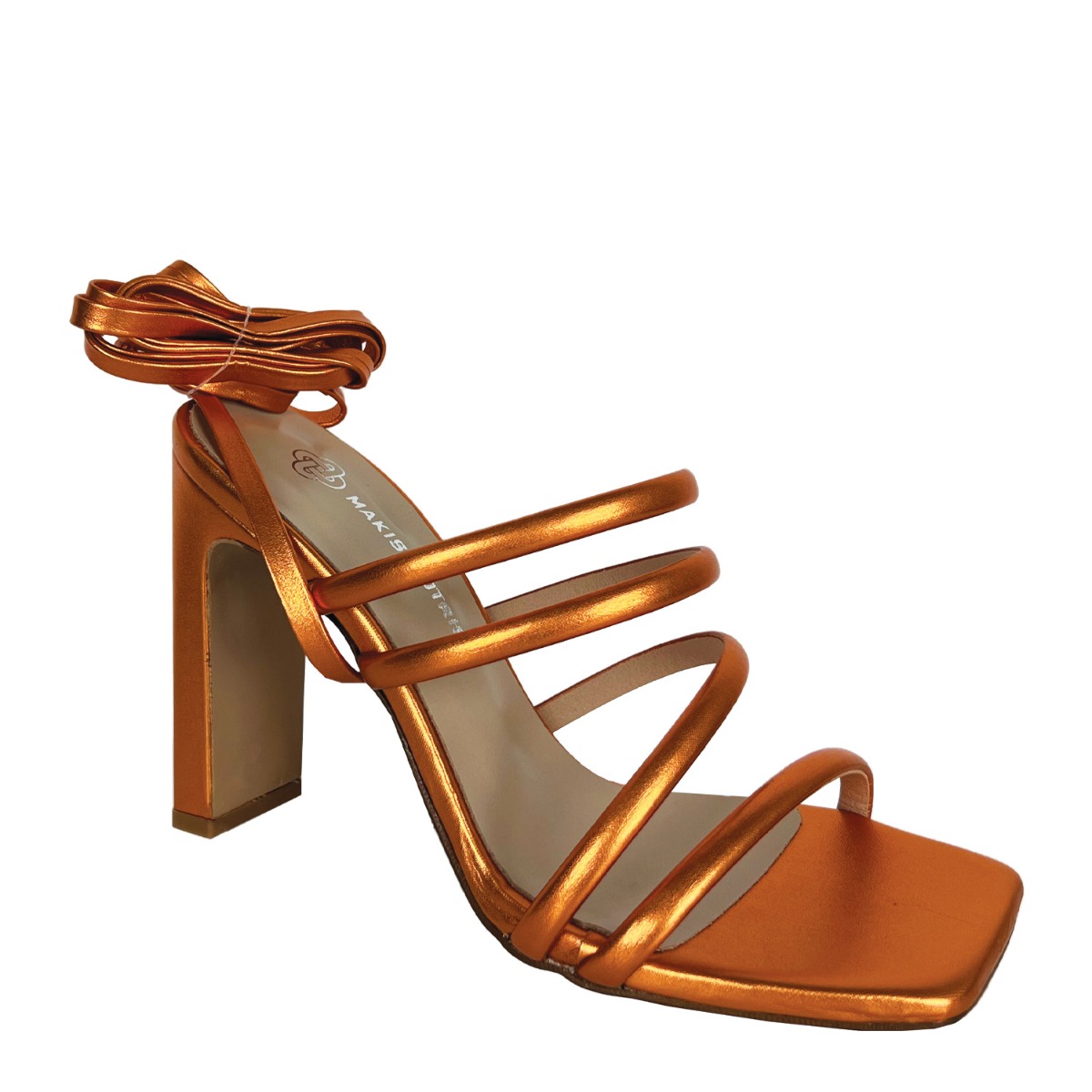 Makis Kotris γυναικείο πέδιλο σε πορτοκαλί χρώμα κατασκευασμένο από οικολογικό δέρμα. Ύψος τακουνιού 11εκ.