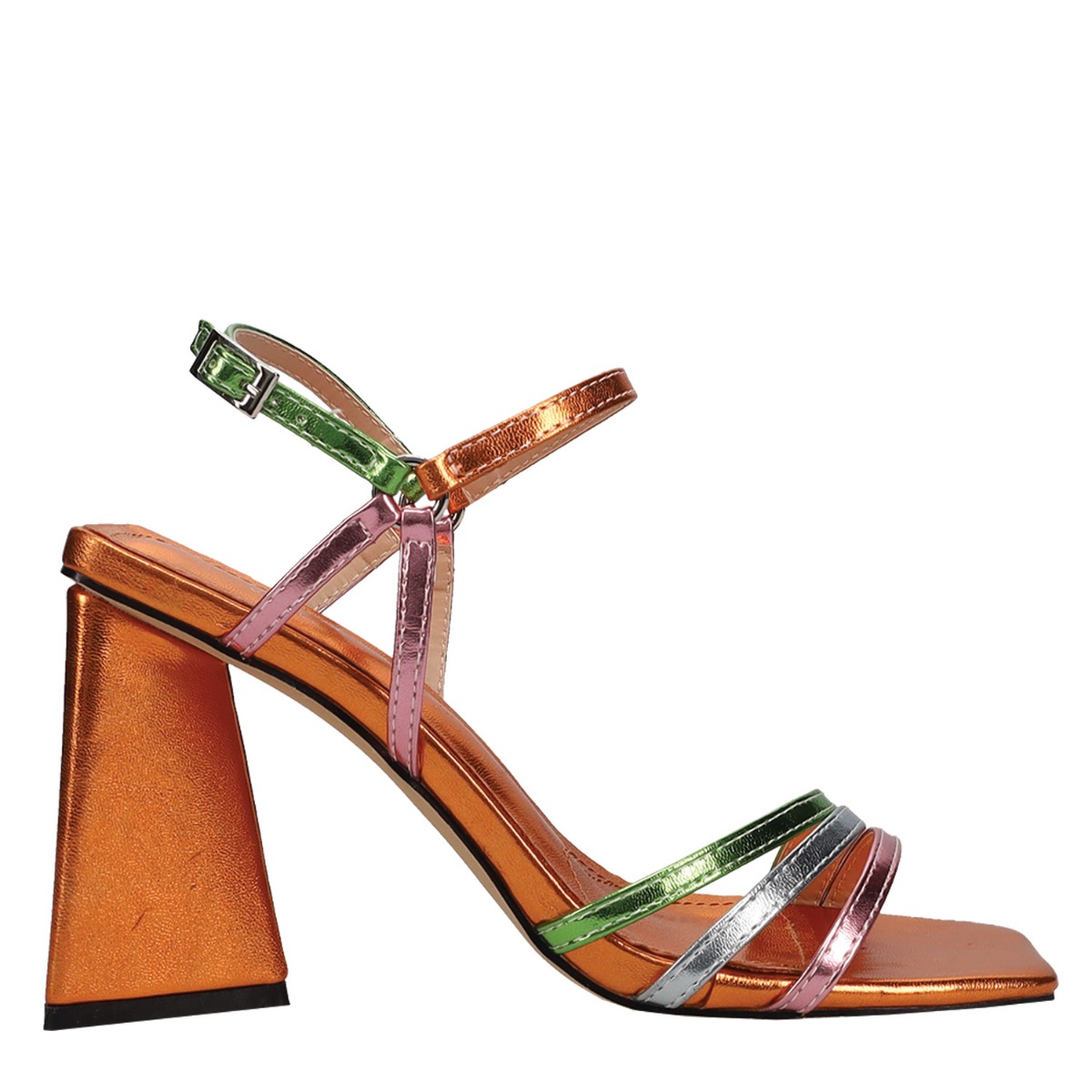Migato γυναικείο πέδιλο πολύχρωμο, κατασκευασμένο από οικολογικό δέρμα. Ύψος τακουνιού 9,5εκ.