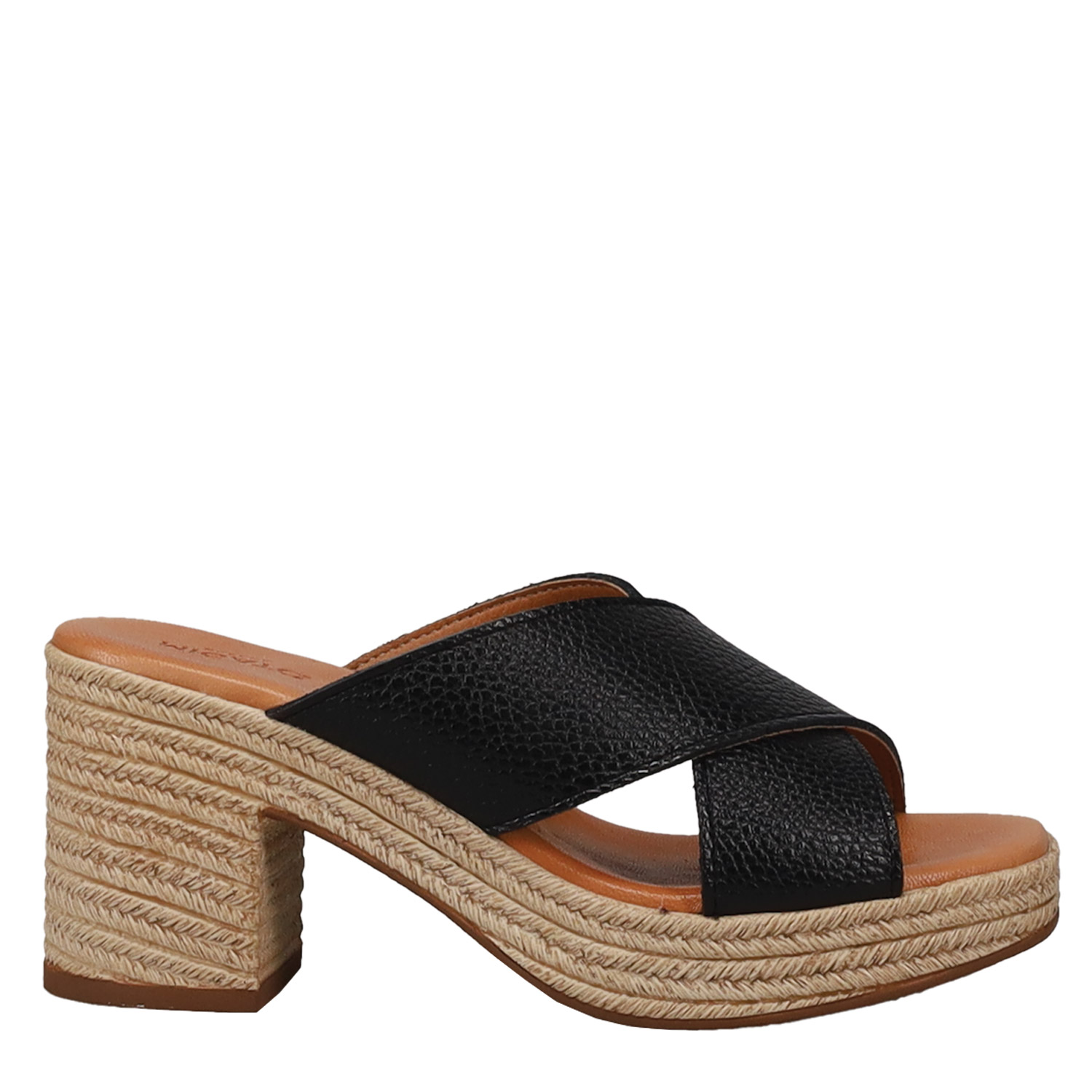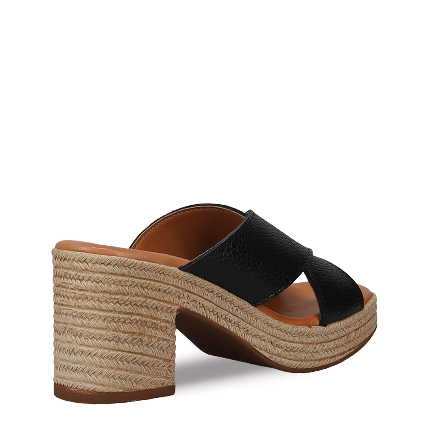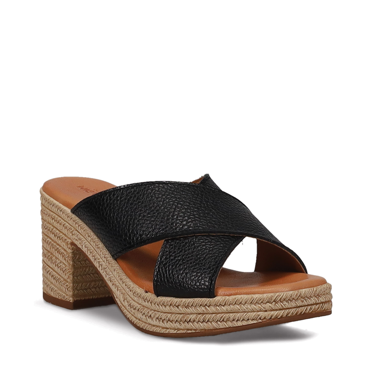 Migato γυναικείο πέδιλο σε μαύρο χρώμα κατασκευασμένο από δέρμα. Ύψος σόλας 8εκ.