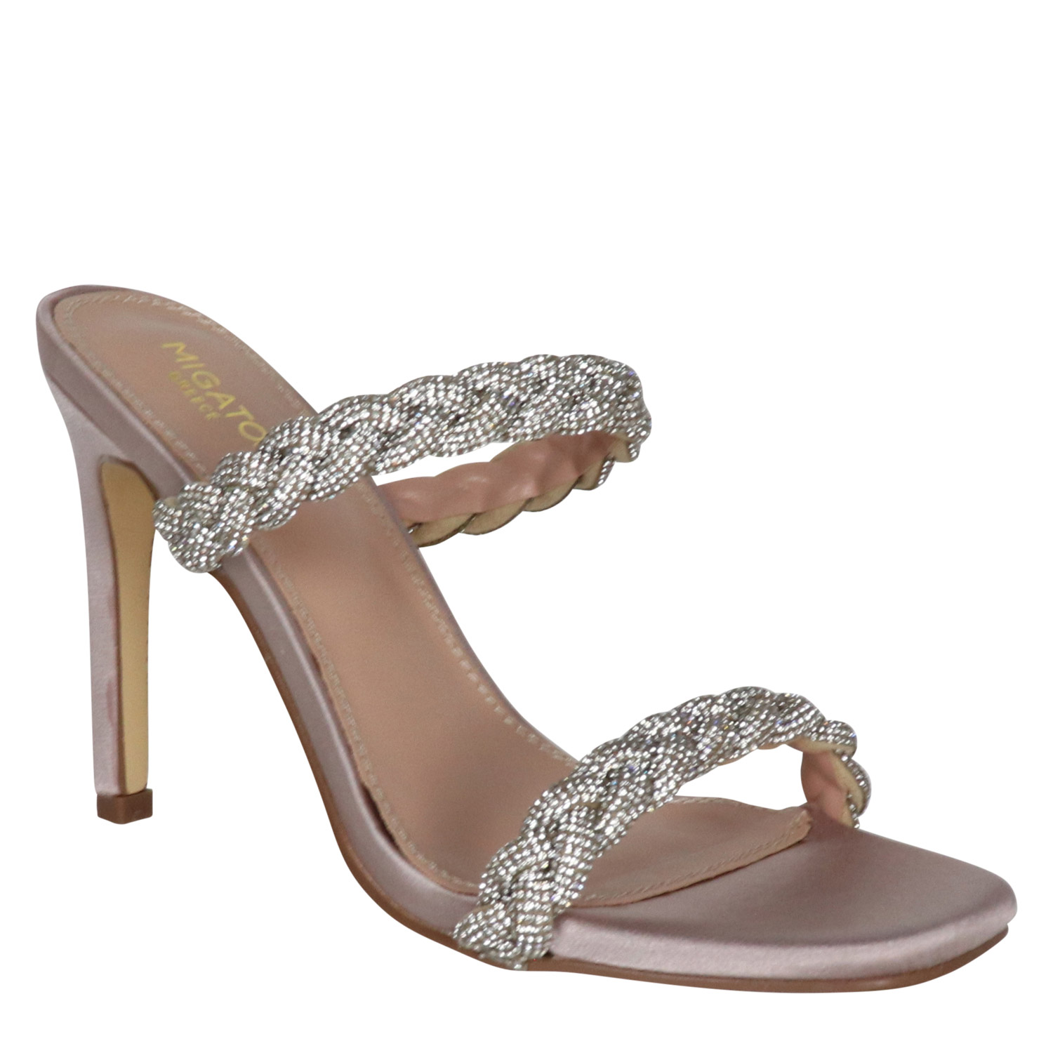 Migato γυναικείο πέδιλο σε nude χρώμα κατασκευασμένο από ύφασμα με στρας. Ύψος σόλας 11εκ.