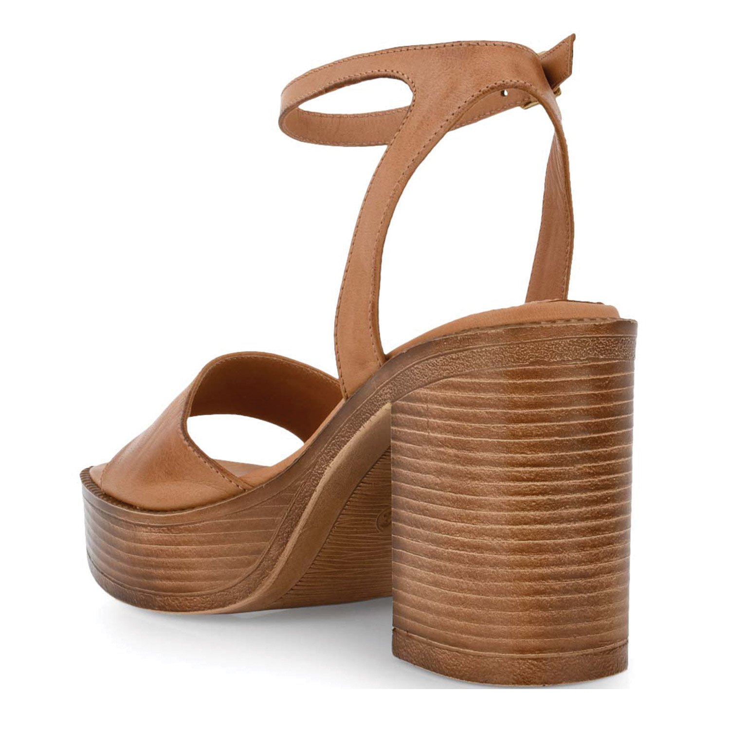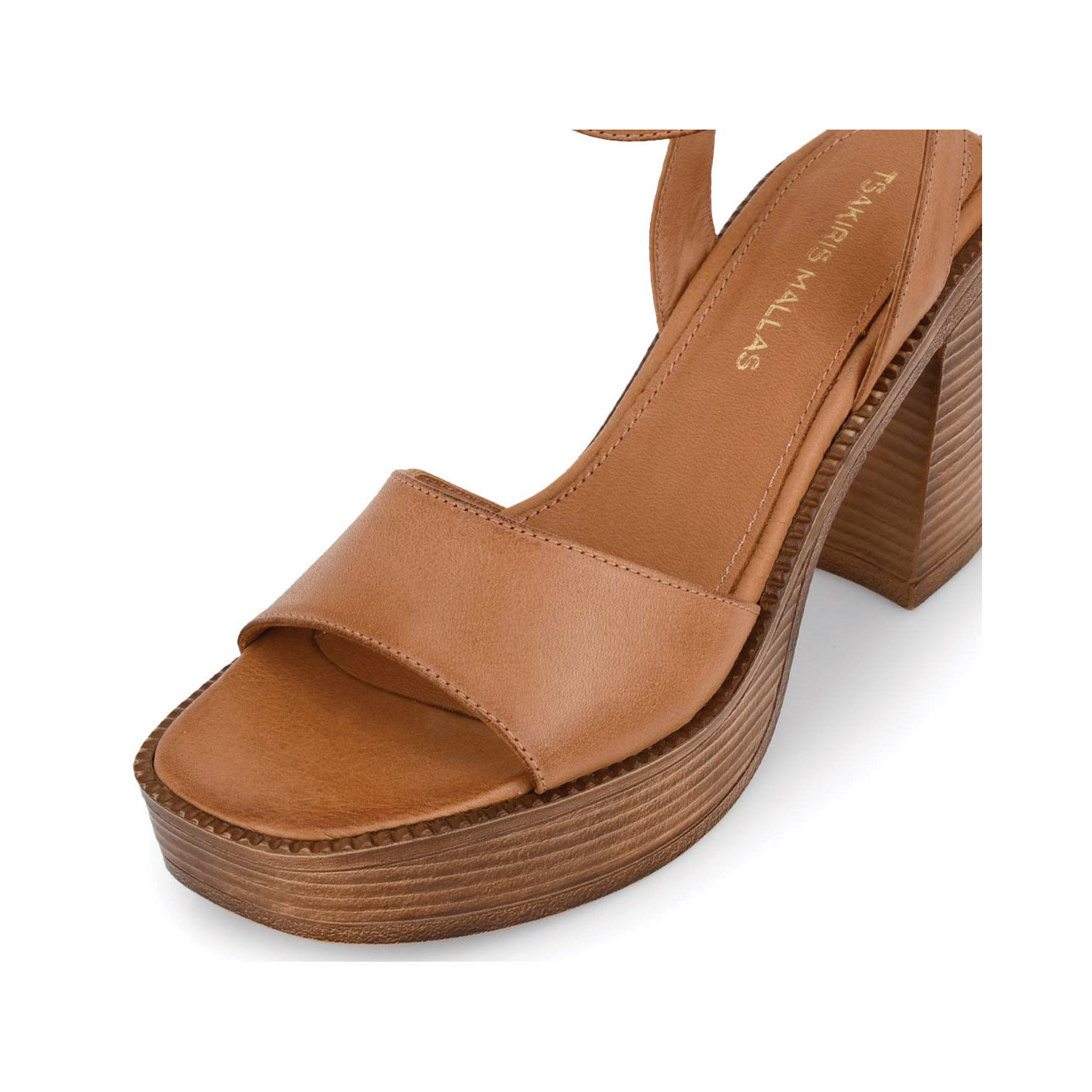 Tsakiris Mallas γυναικείο πέδιλο, σε ταμπά χρώμα, κατασκευασμένο από δέρμα. Ύψος τακουνιού 9.5εκ.