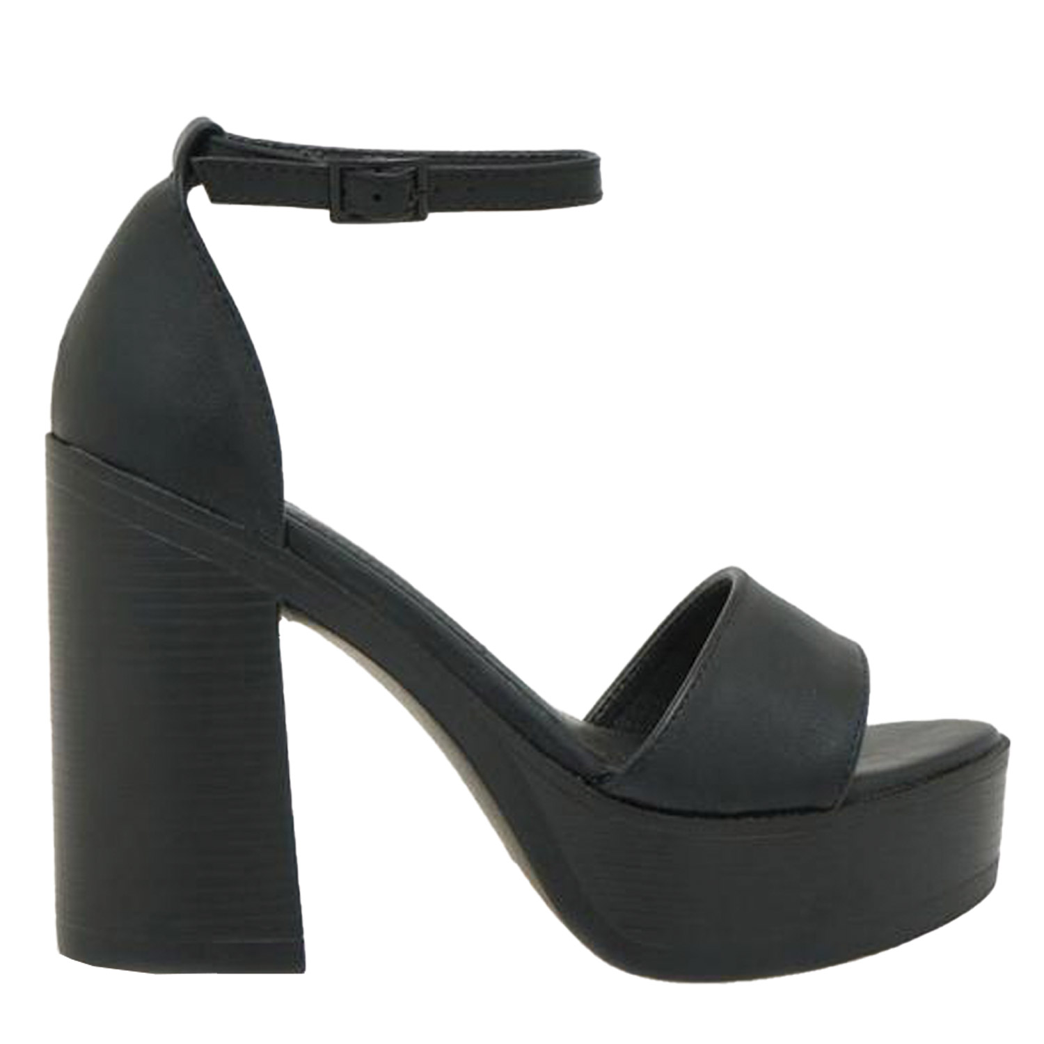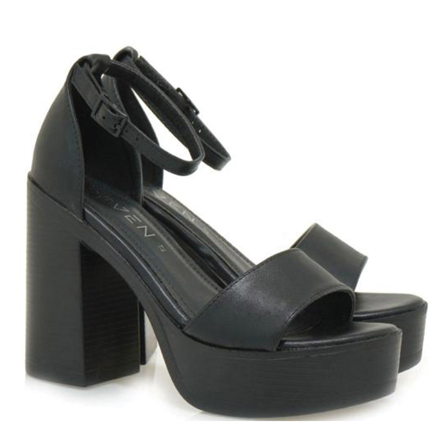 Seven γυναικείο πέδιλο, σε μαύρο χρώμα, κατασκευασμένο από οικολογικό δέρμα. Ύψος τακουνιού 12εκ., Ύψος φιάπας 3.5εκ.