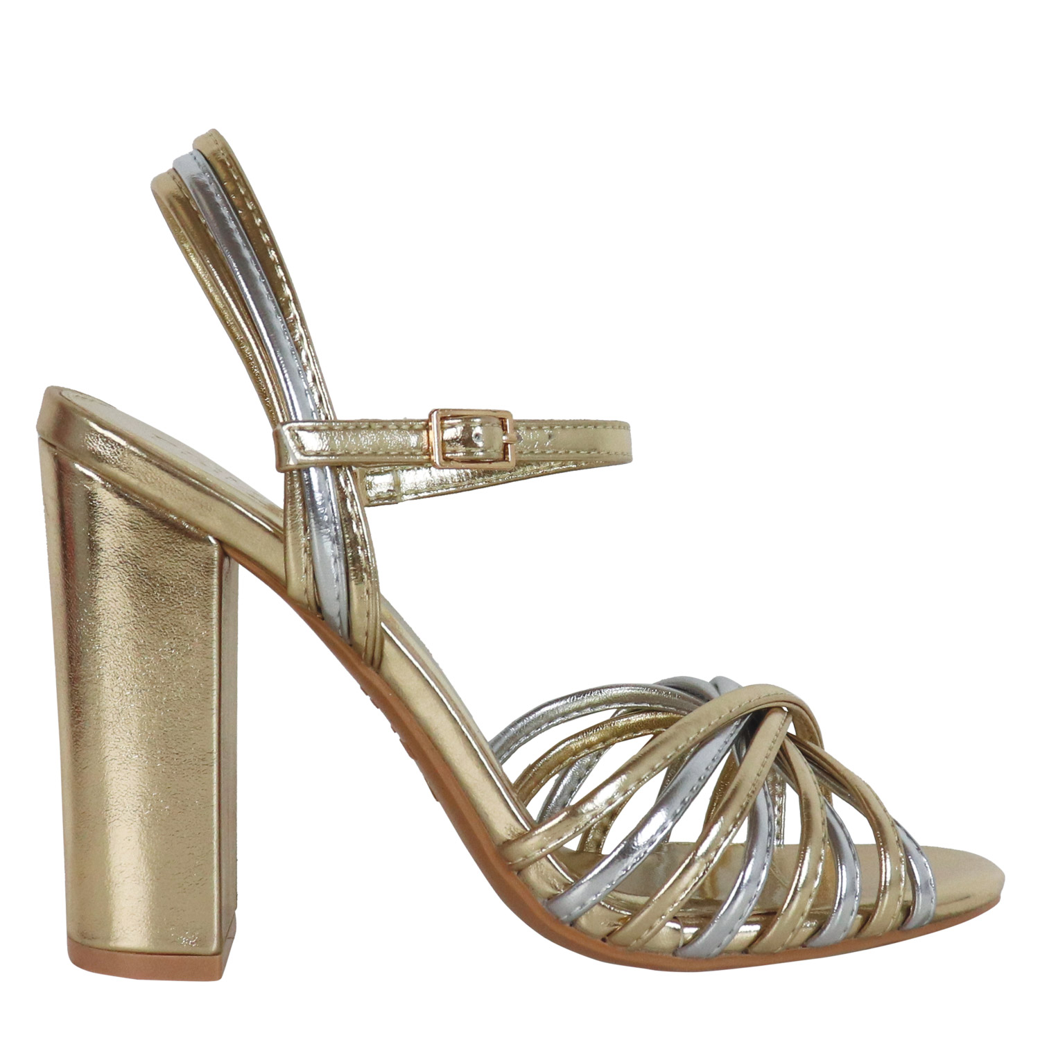 Primadonna γυναικείο πέδιλο, σε χρυσό χρώμα, κατασκευασμένο από οικολογικό δέρμα. Ύψος τακουνιού 10.5εκ.