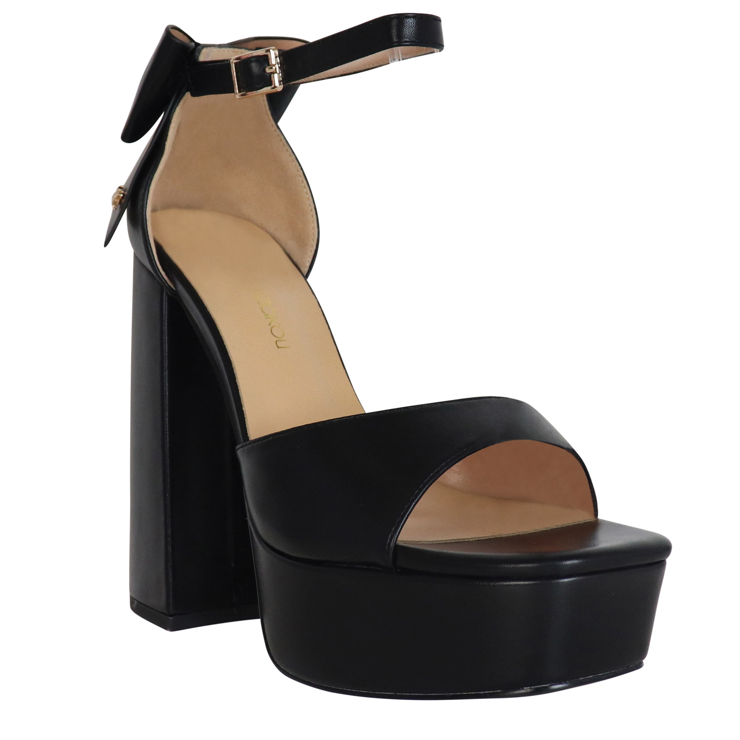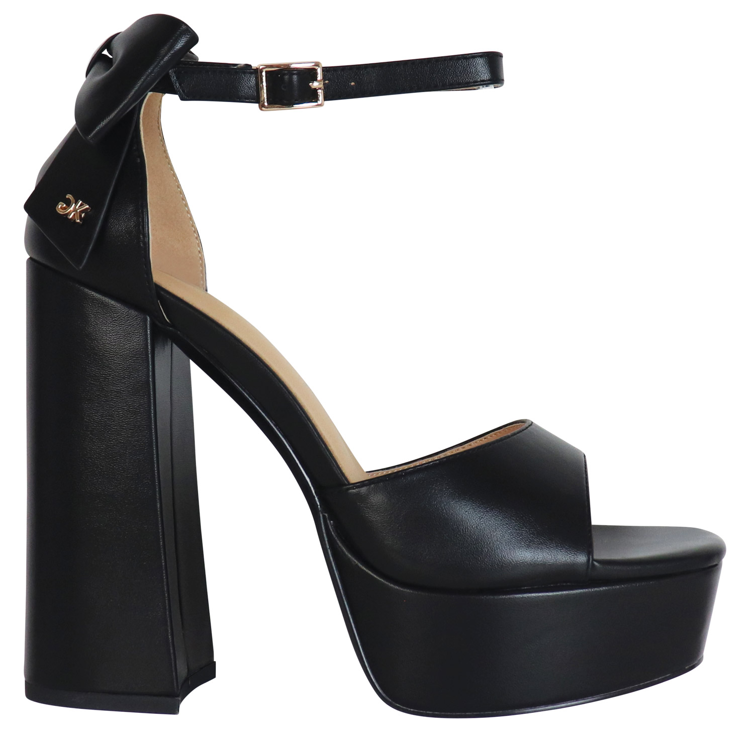 Gianna Kazakou γυναικείο πέδιλο, σε μαύρο χρώμα, κατασκευασμένο από οικολογικό δέρμα με δερμάτινο πατάκι. Ύψος τακουνιού 13.5εκ.