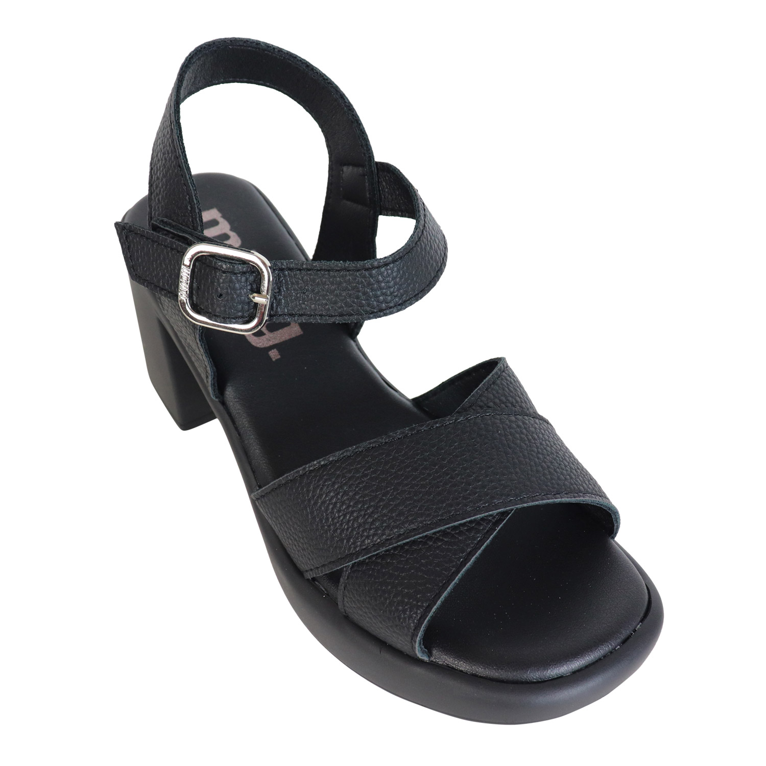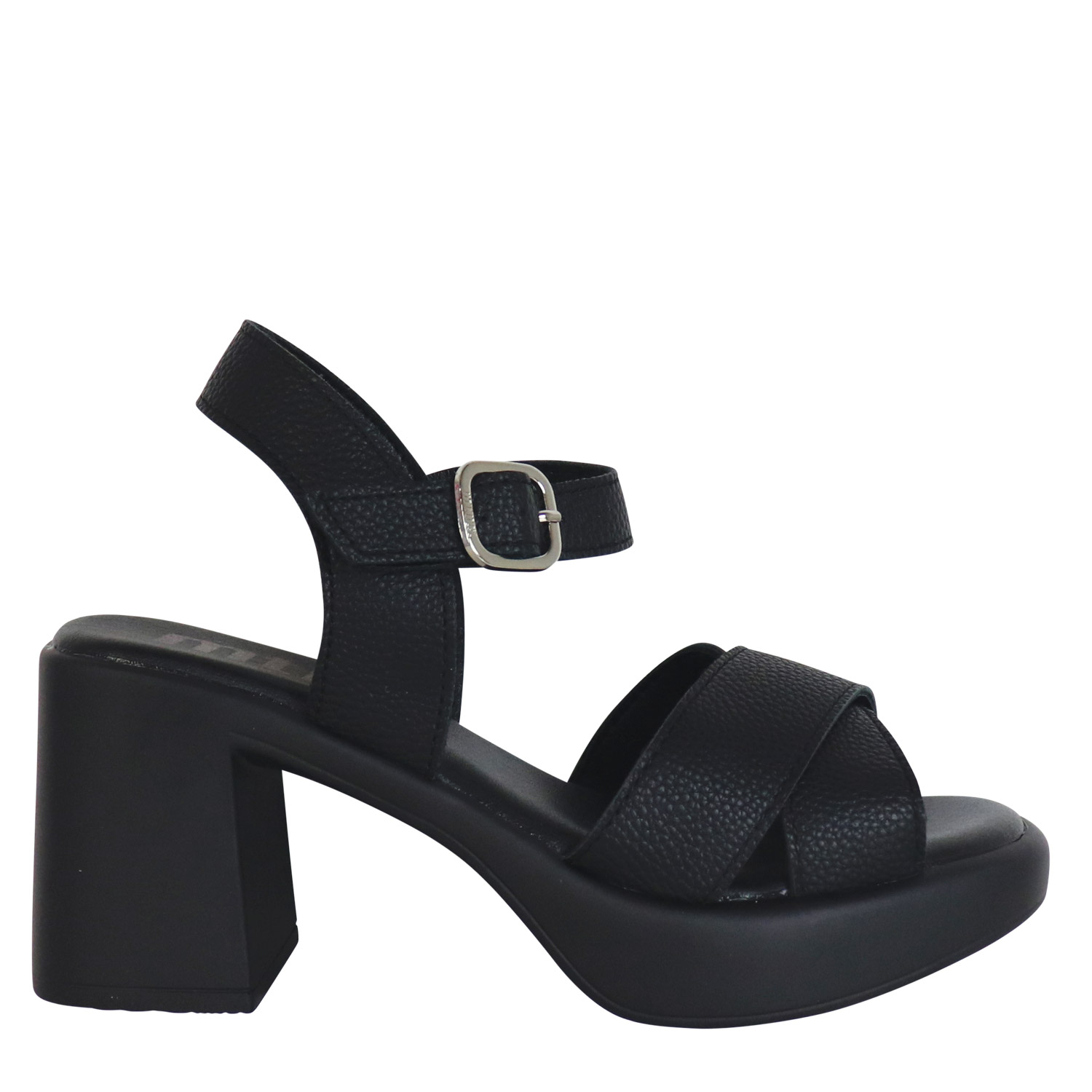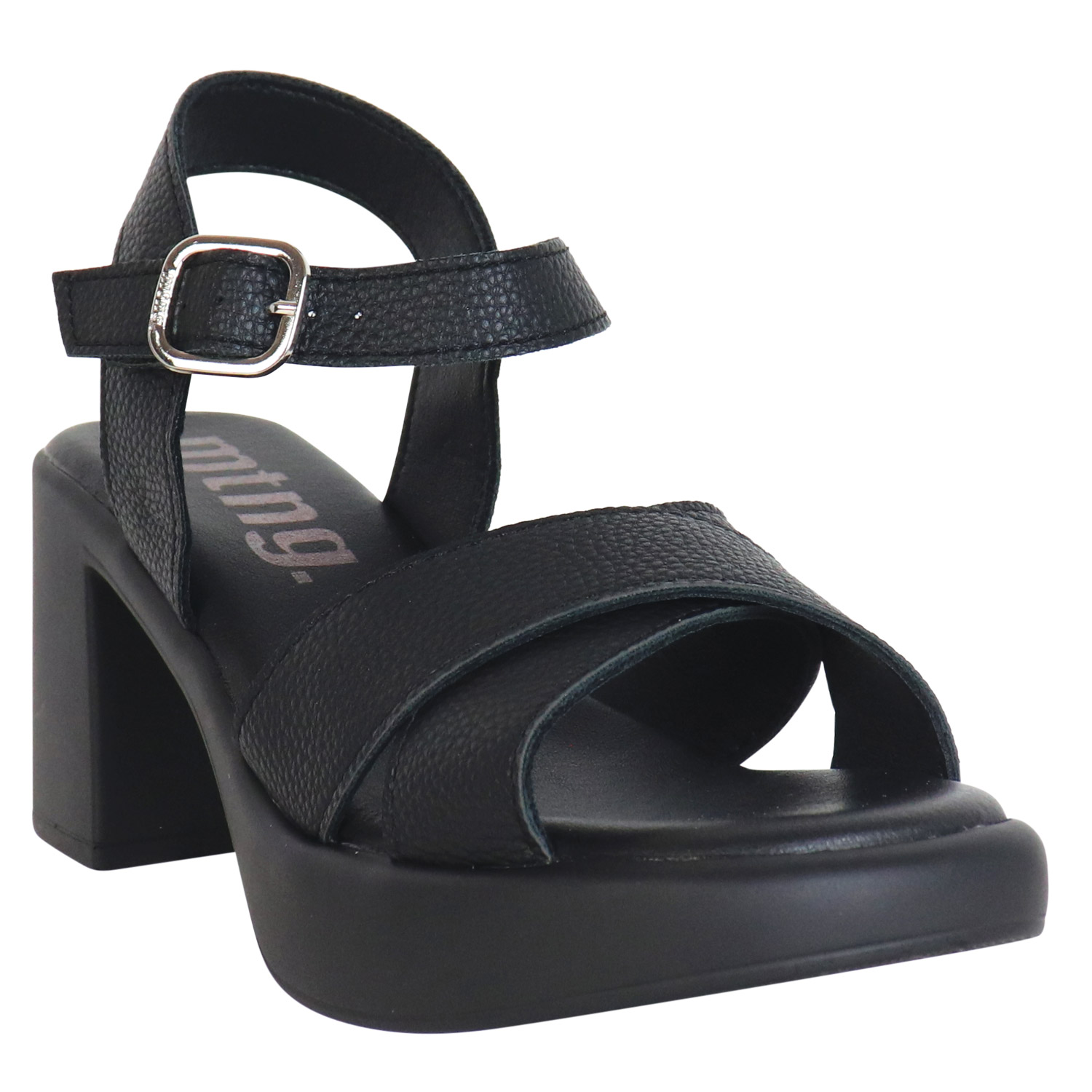 MTNG γυναικείο πέδιλο, σε μαύρο χρώμα, κατασκευασμένο από οικολογικό δέρμα. Ύψος τακουνιού 8εκ.
