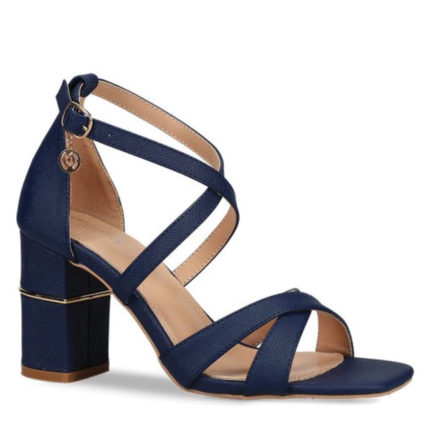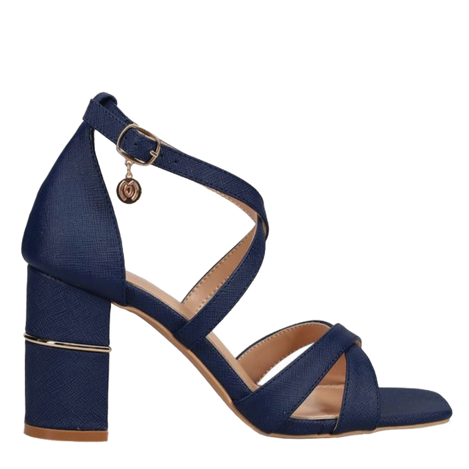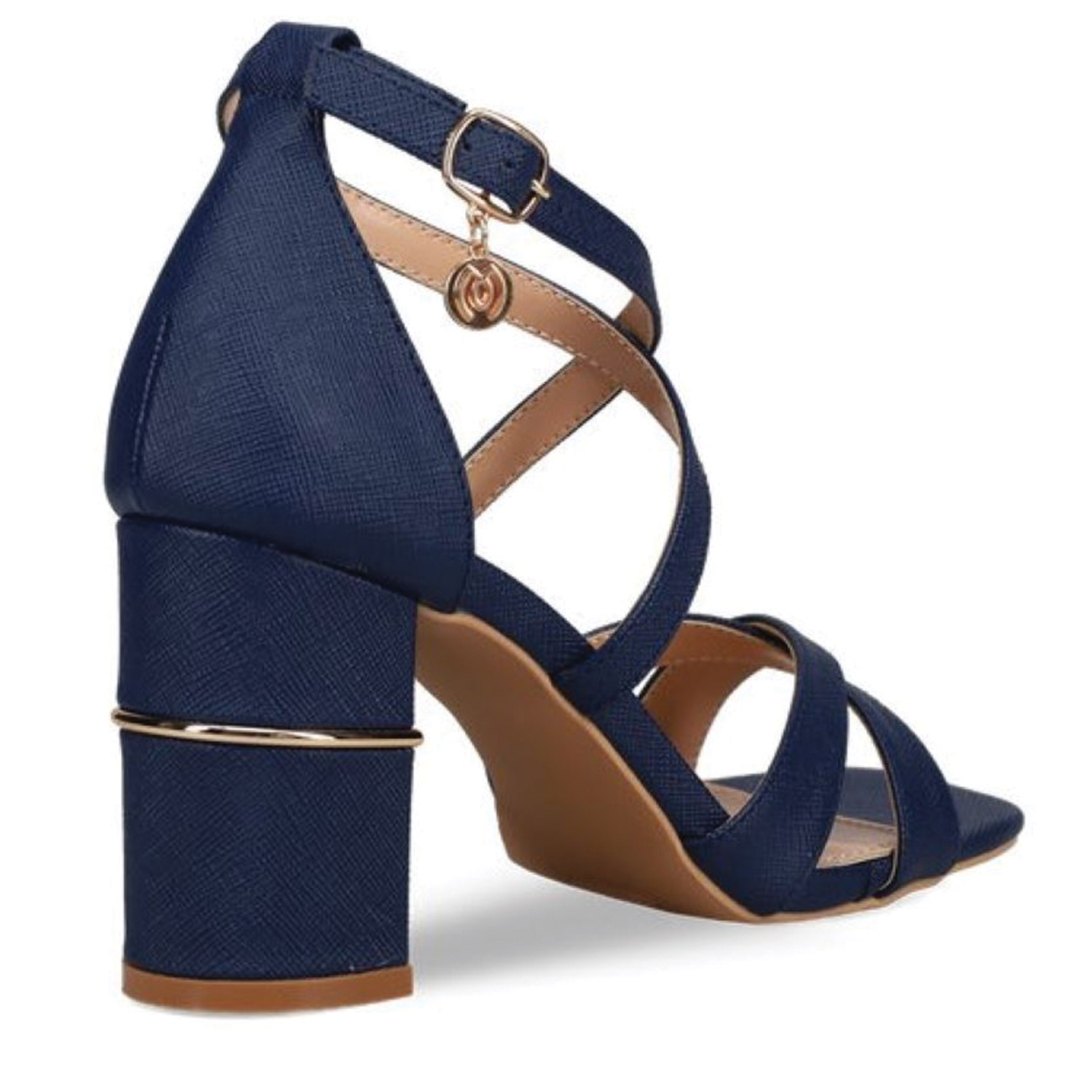 Migato γυναικείο πέδιλο, σε μπλε χρώμα, κατασκευασμένο από οικολογικό δέρμα. Ύψος τακουνιού 8εκ.