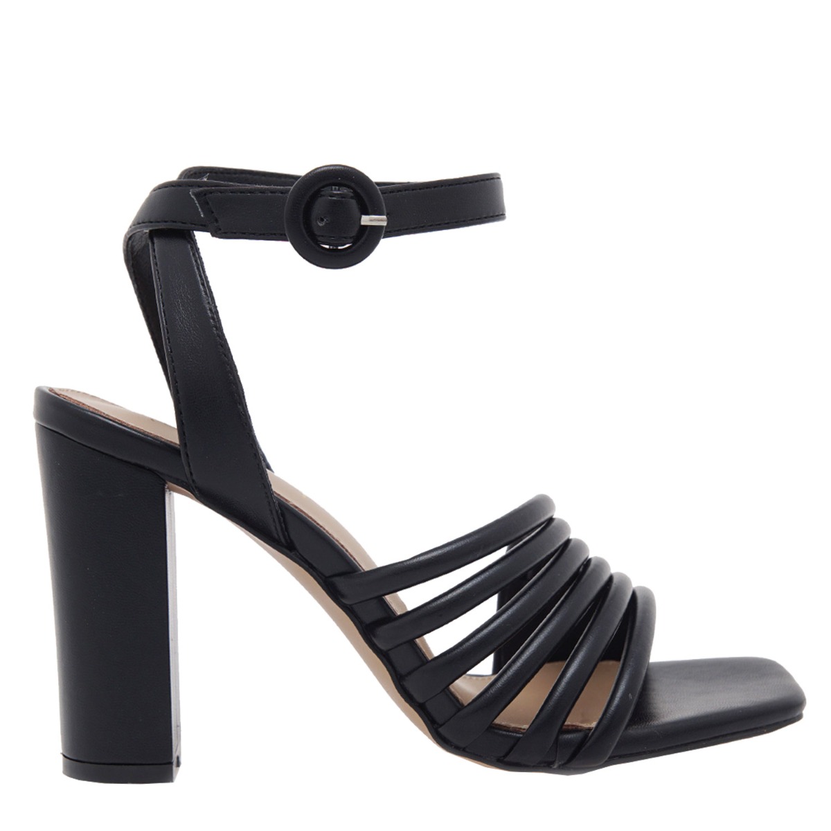Seven γυναικείο πέδιλο σε μαύρο χρώμα κατασκευασμένο από οικολογικό δέρμα, με ανατομικό πατάκι. Ύψος τακουνιού 10εκ.