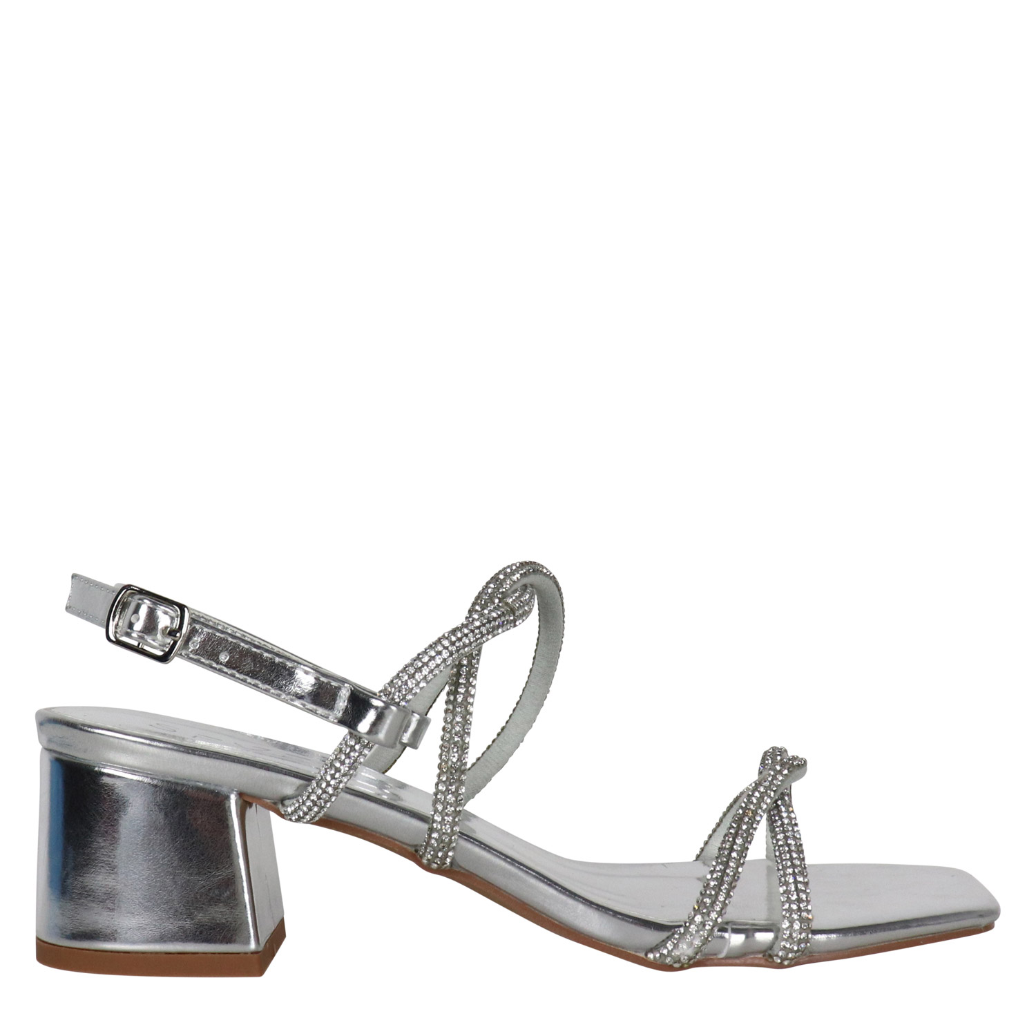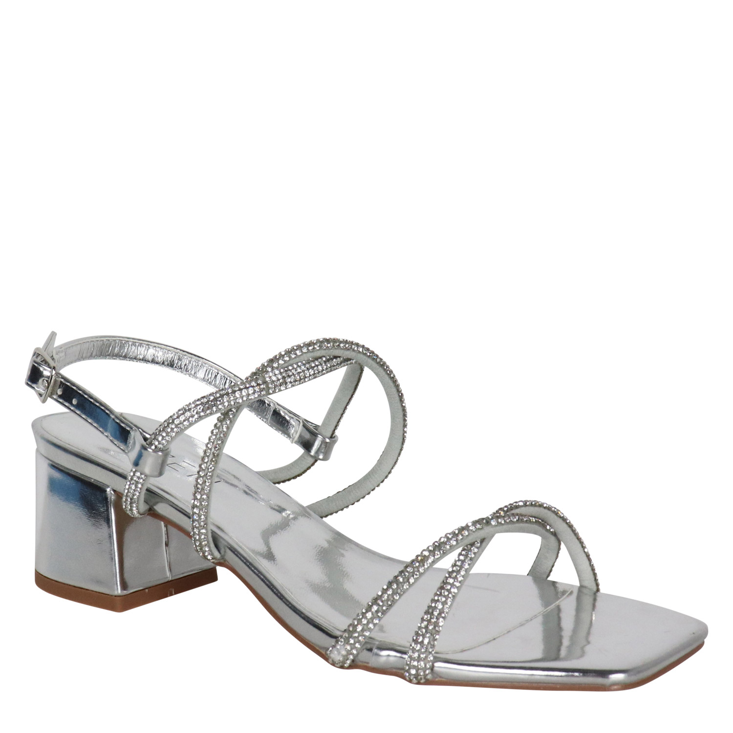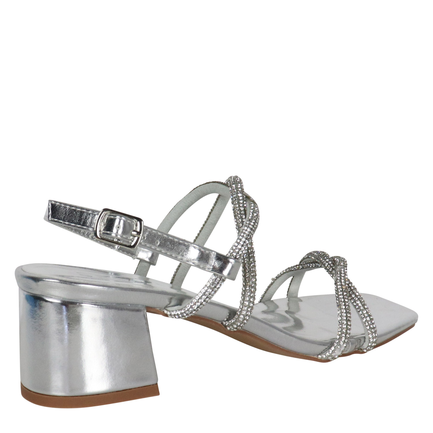 Seven γυναικείο πέδιλο σε ασημί χρώμα με στρας κατασκευασμένο από οικολογικό δέρμα. Ύψος σόλας 6εκ.