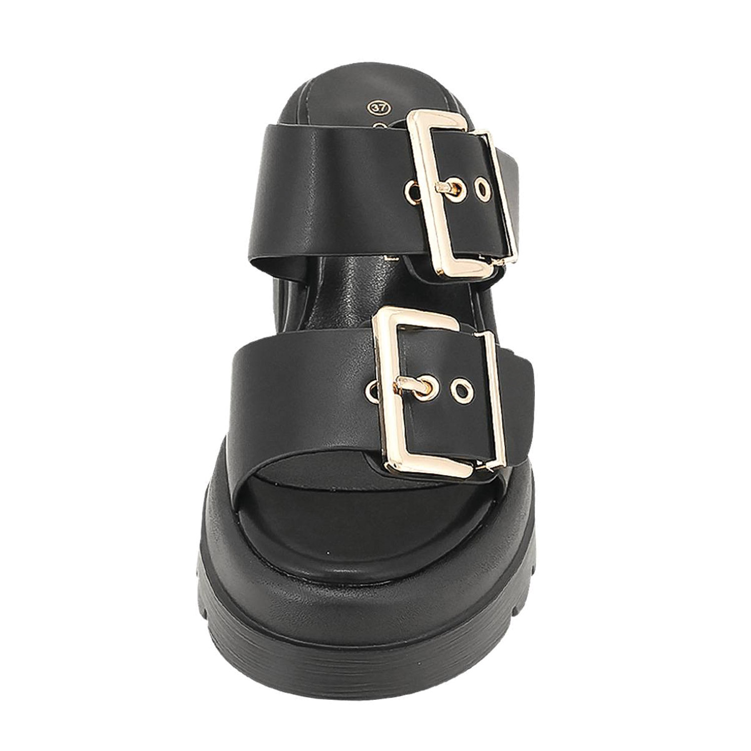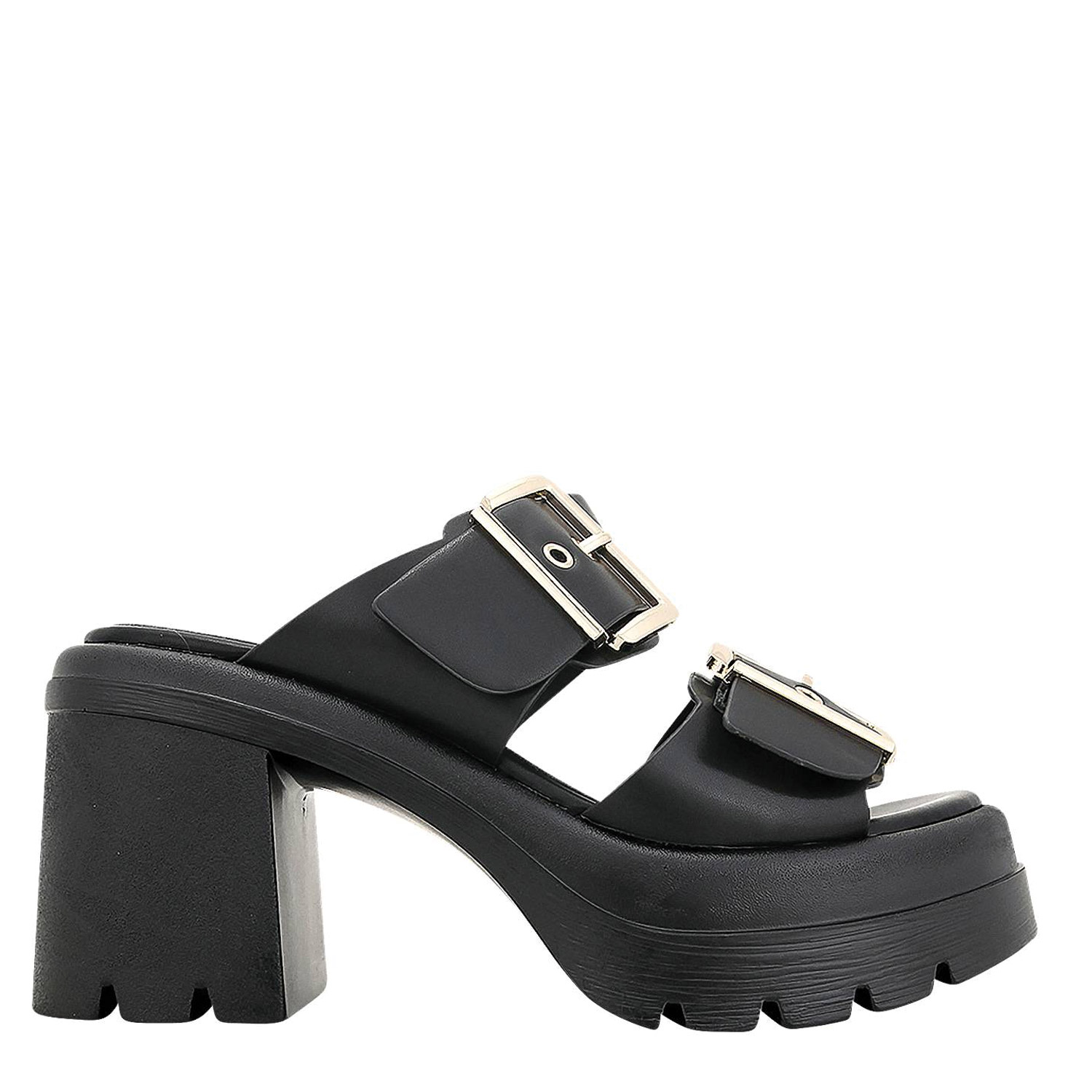 Gianna Kazakou σε μαύρο χρώμα κατασκευασμένο από οικολογικό δέρμα. Ύψος τακουνιού 9εκ.