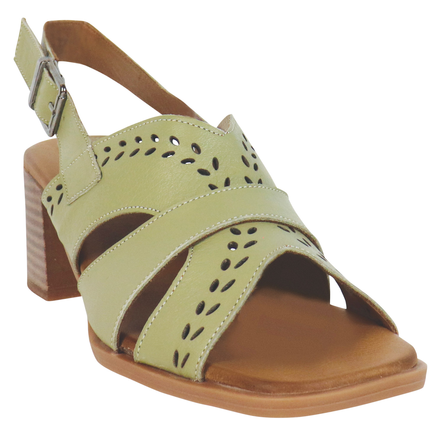 Koniarisshoes γυναικείο πέδιλο, σε χακί χρώμα, κατασκευασμένο από δέρμα, με δερμάτινο πάτο. Ύψος τακουνιού 5εκ.