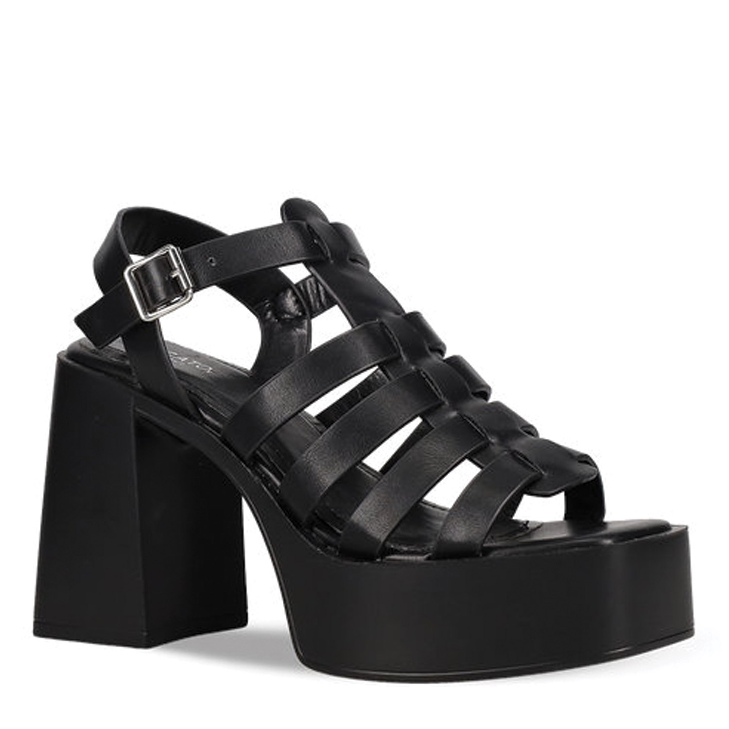 Migato γυναικείο πέδιλο σε μαύρο χρώμα κατασκευασμένο από οικολογικό δέρμα. Ύψος τακουνιού 8εκ.