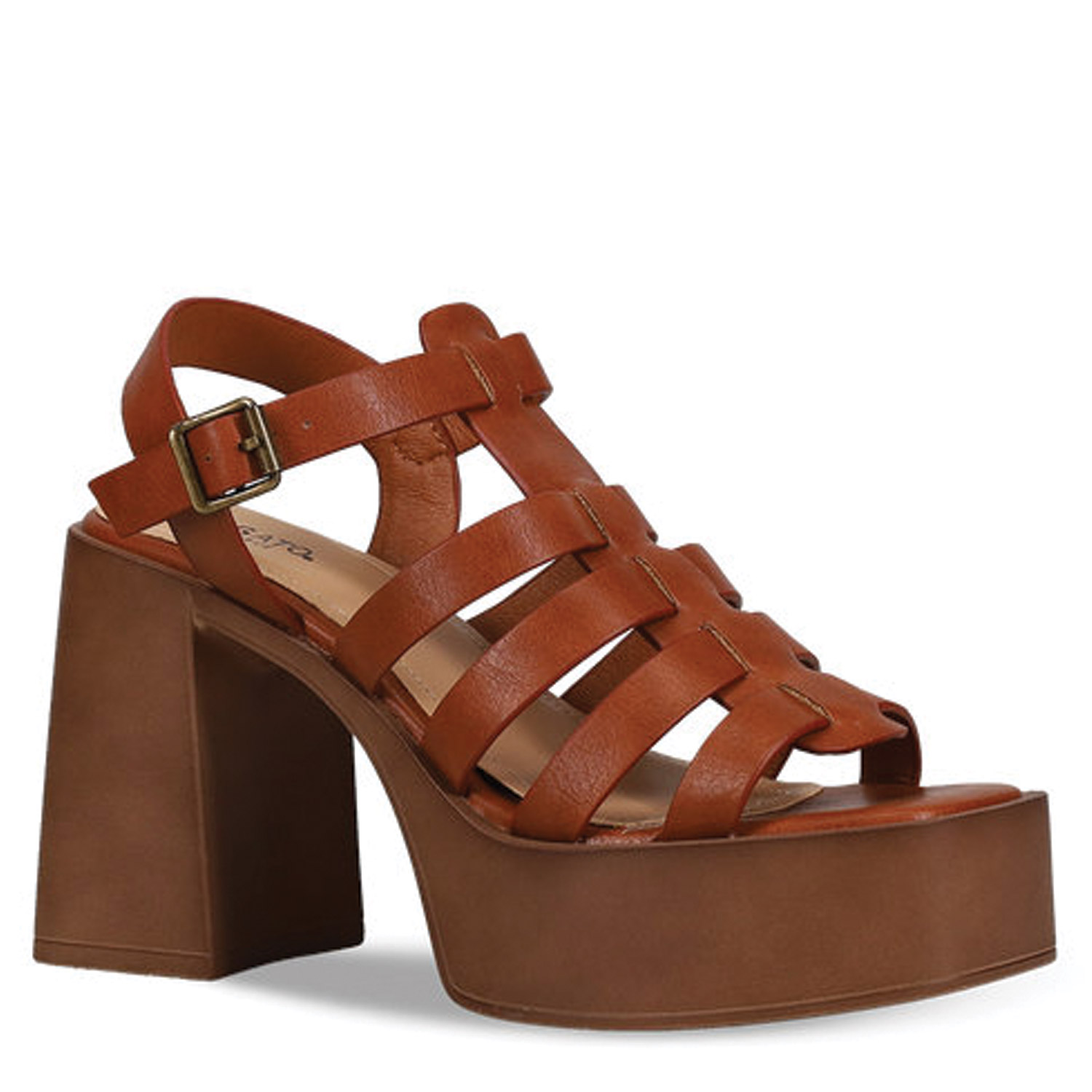 Migato γυναικείο πέδιλο σε ταμπά χρώμα κατασκευασμένο από οικολογικό δέρμα. Ύψος τακουνιού 8εκ.