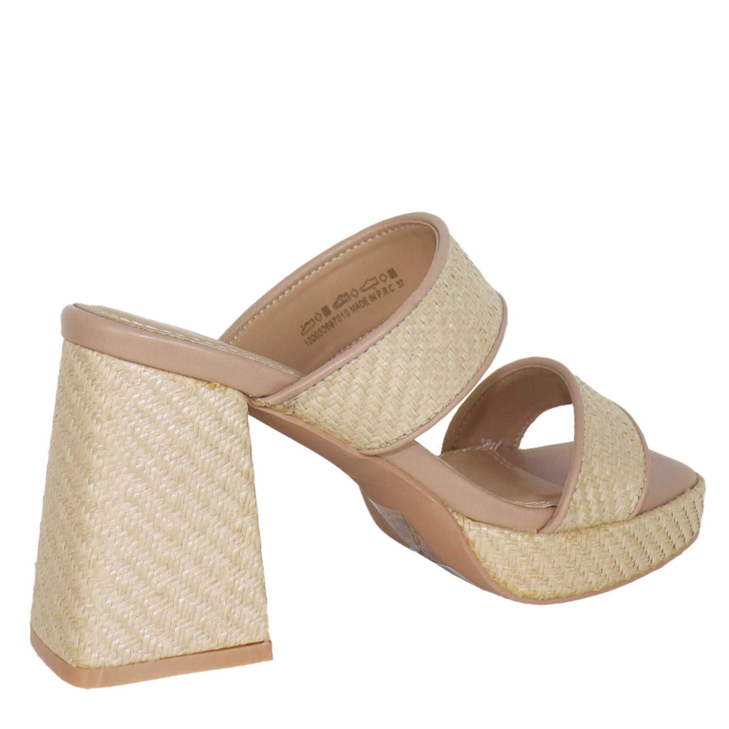 Migato γυναικείο πέδιλο σε μπεζ χρώμα κατασκευασμένο από οικολογικό δέρμα. Ύψος τακουνιού 10εκ.