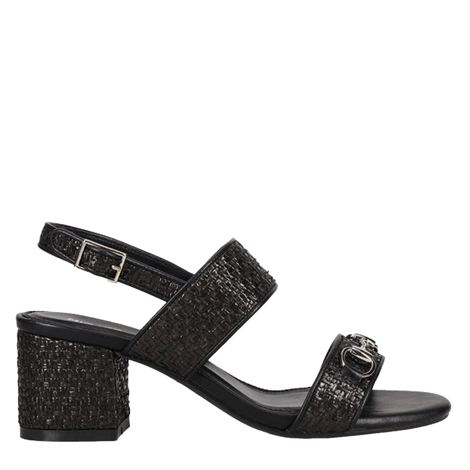 Migato γυναικείο πέδιλο σε μαύρο χρώμα κατασκευασμένο από ύφασμα. Ύψος τακουνιού 6.5εκ.