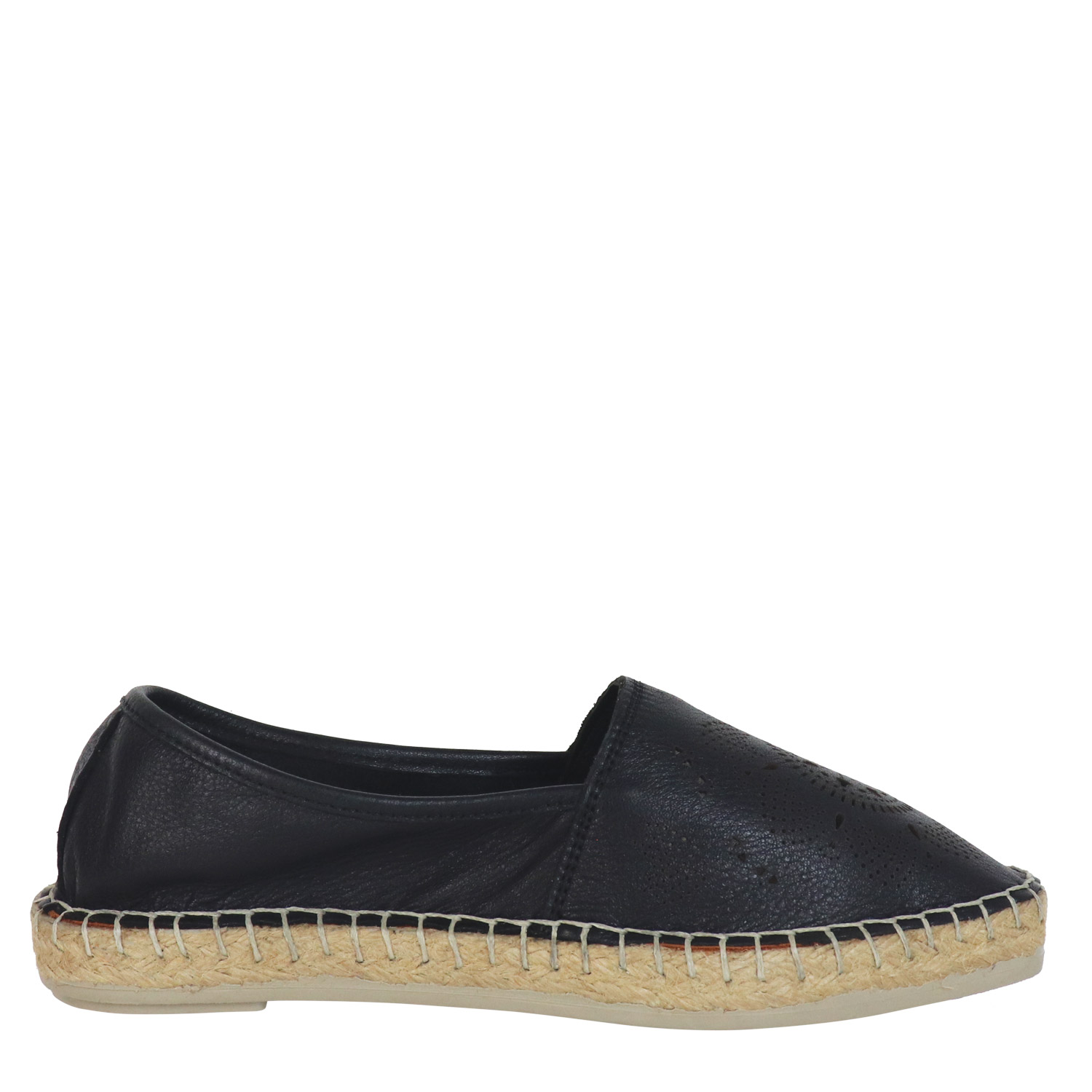 Koniarisshoes γυναικεία εσπαντρίγια, σε μαύρο χρώμα, κατασκευασμένη από δέρμα, με δερμάτινο πάτο. Ύψος σόλας 1.5εκ.