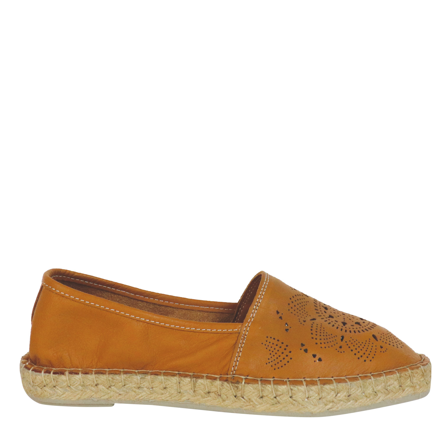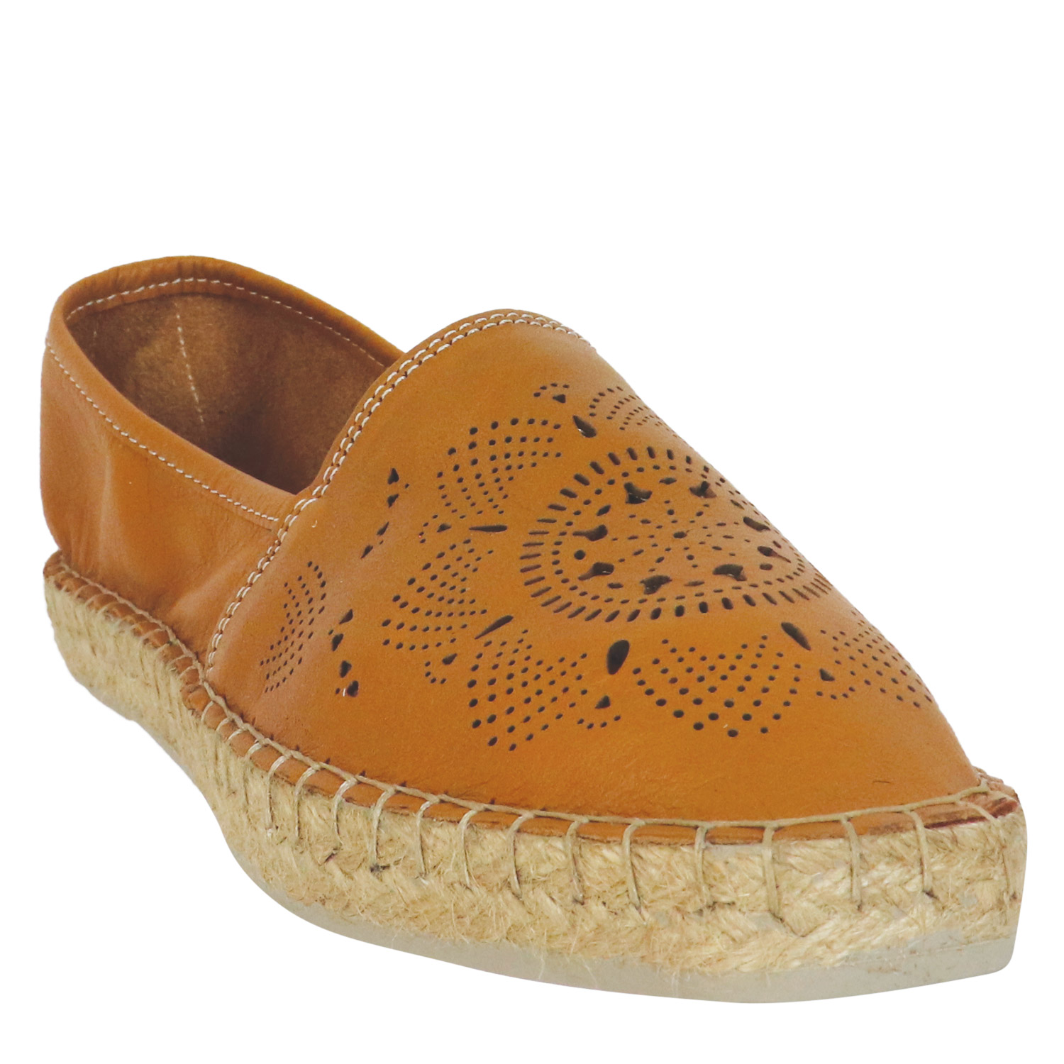 Koniarisshoes γυναικεία εσπαντρίγια, σε ταμπά χρώμα, κατασκευασμένη από δέρμα, με δερμάτινο πάτο. Ύψος σόλας 1.5εκ.
