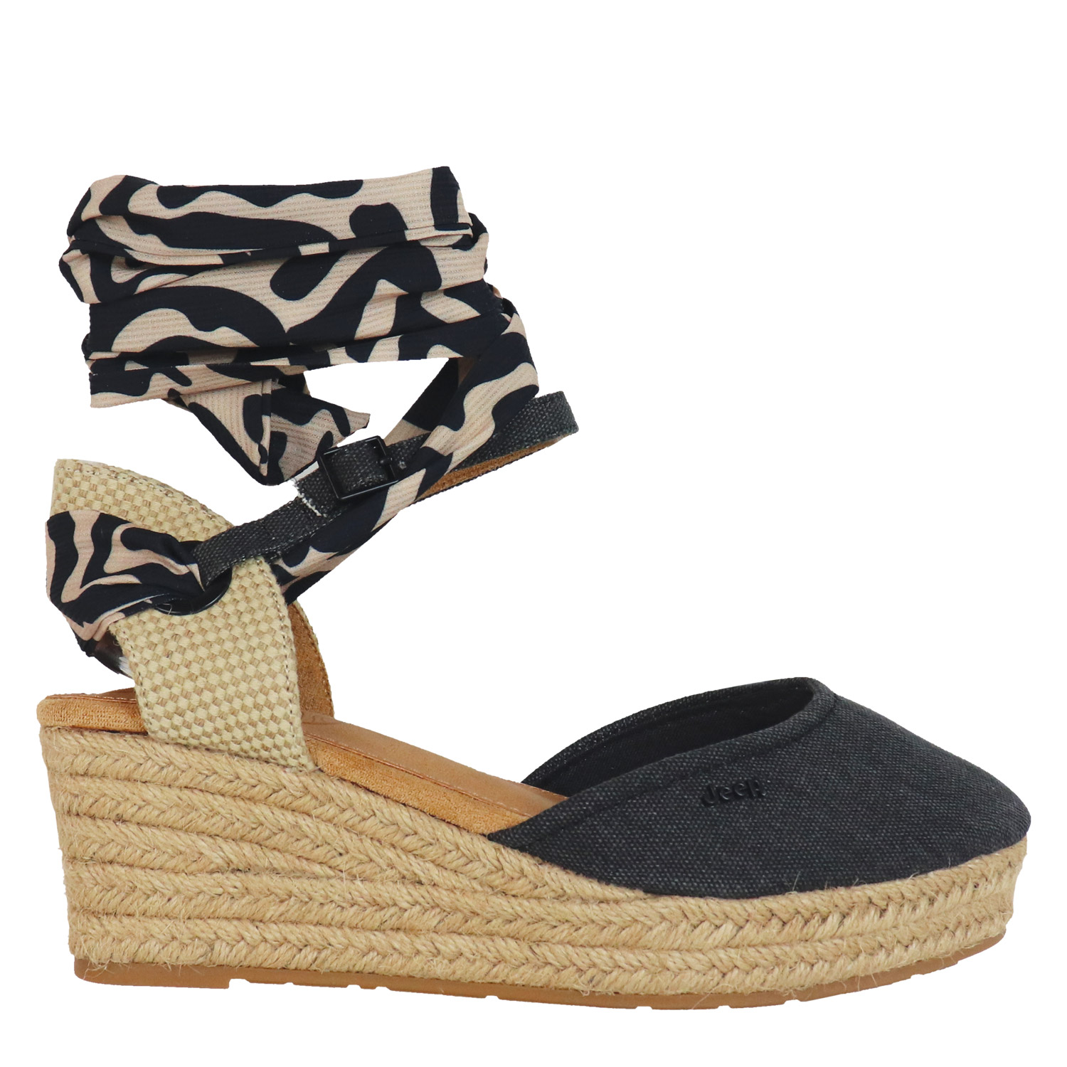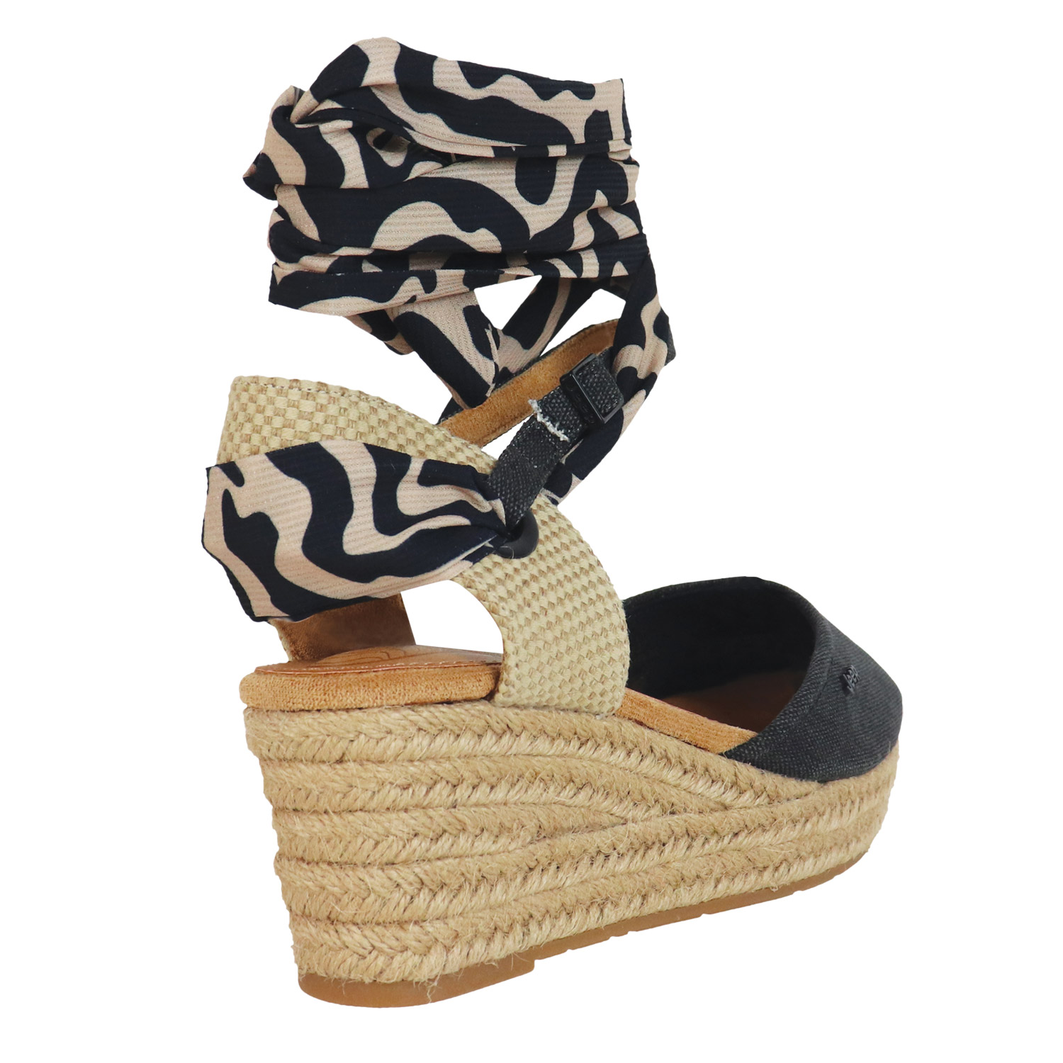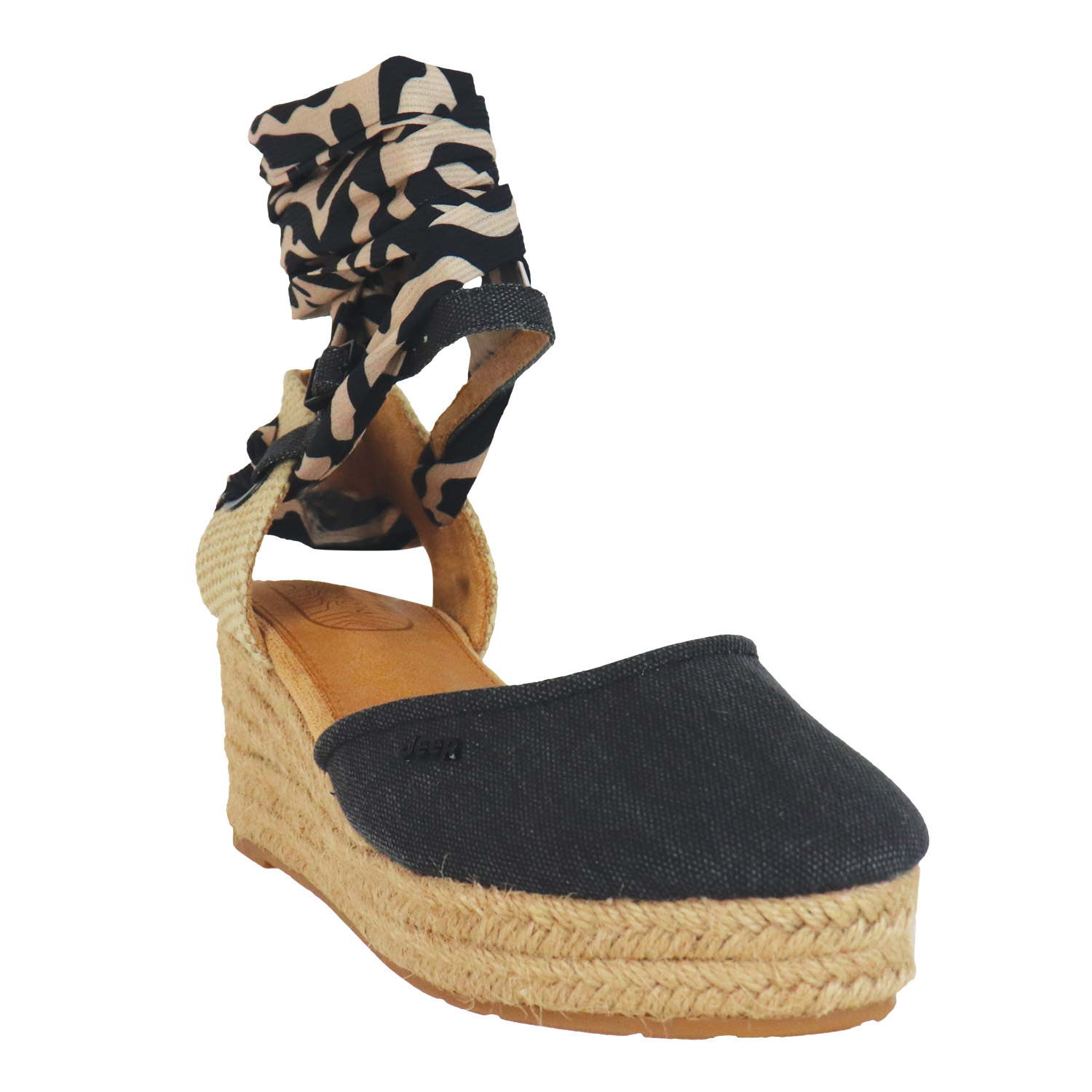 Jeep γυναικεία εσπαντρίγια, σε μαύρο χρώμα, κατασκευασμένη από ύφασμα. Ύψος σόλας 6εκ.