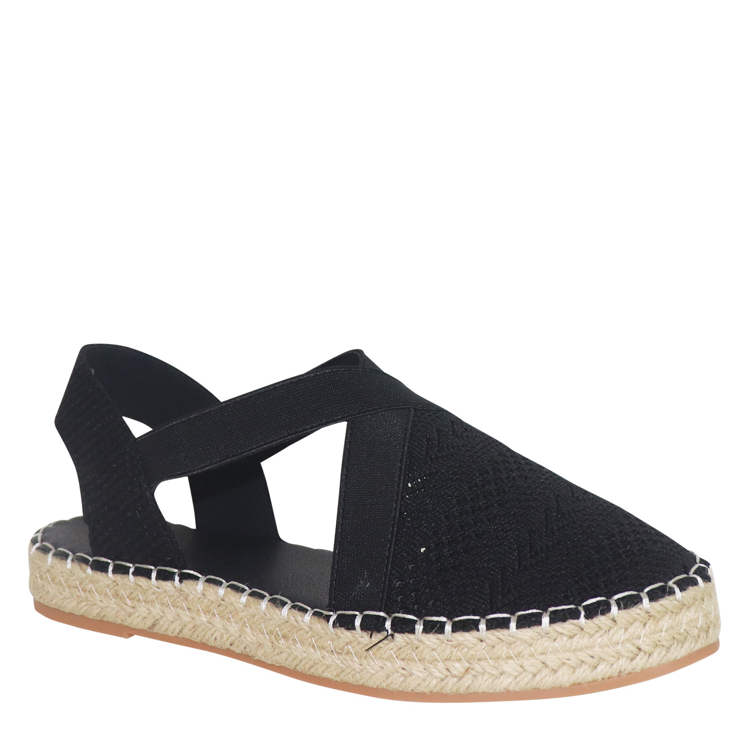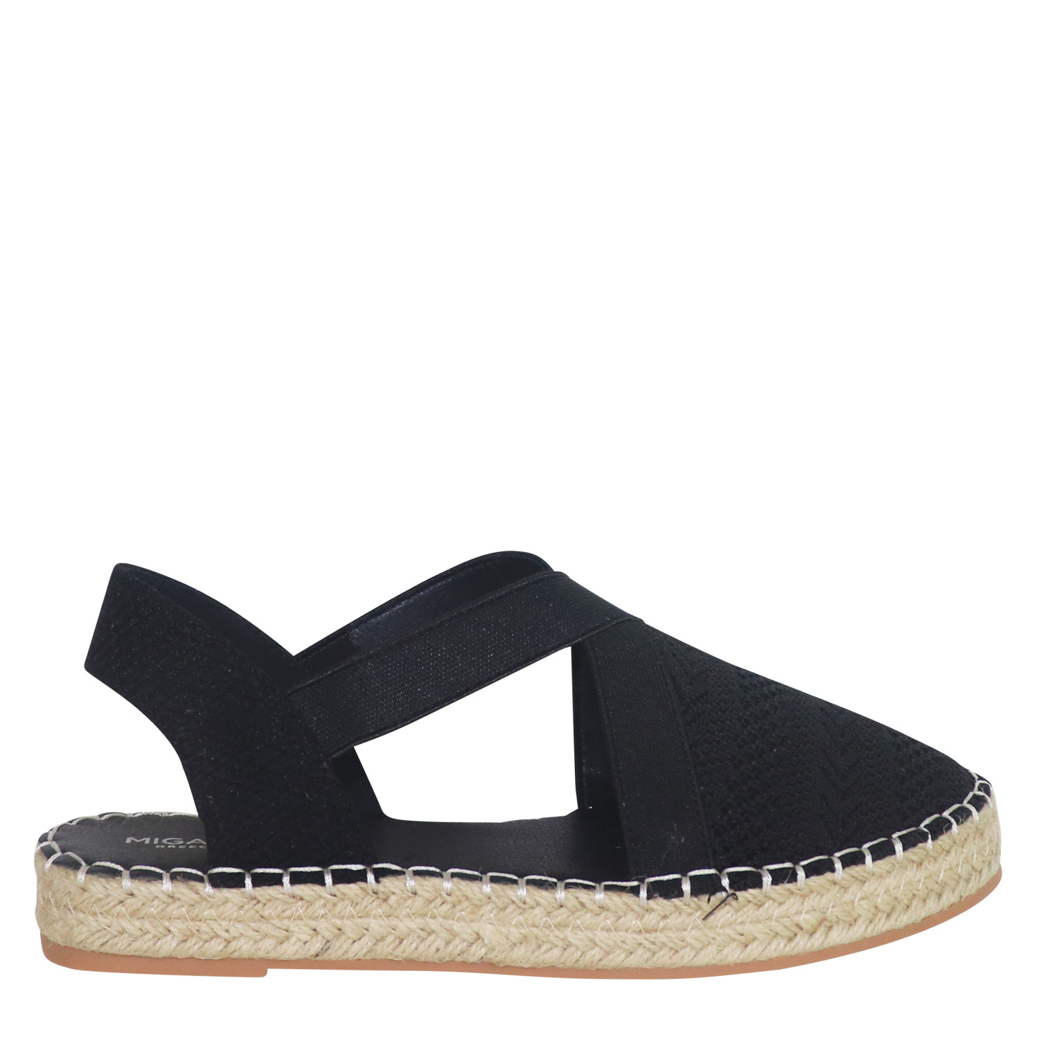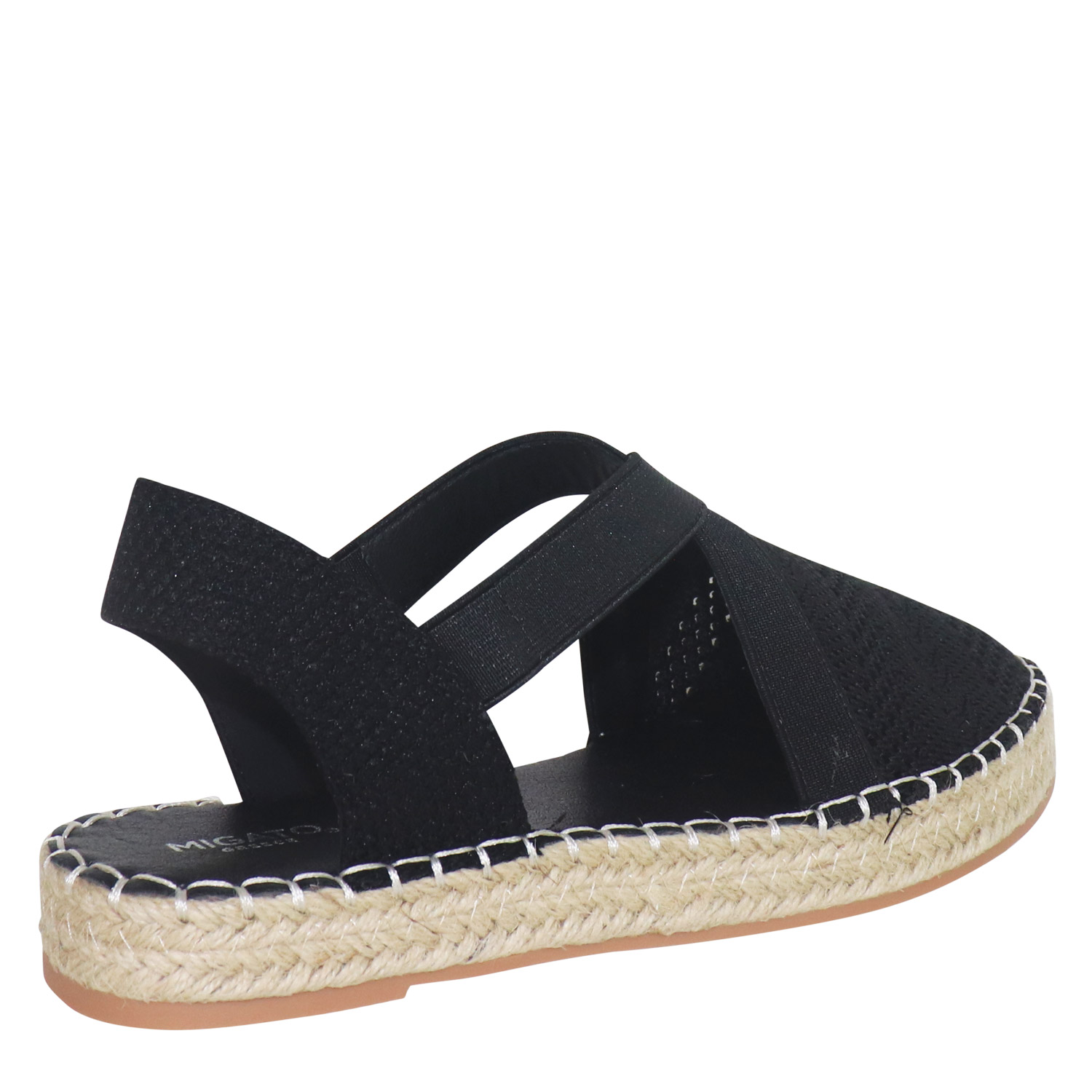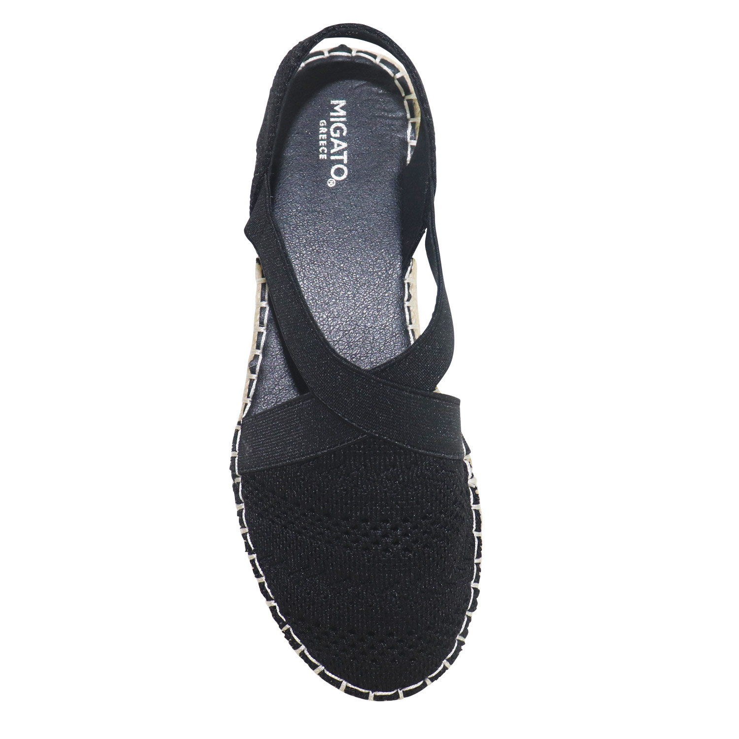 Migato γυναικεία εσπαντρίγια, σε μαύρο χρώμα, κατασκευασμένη από ύφασμα. Ύψος τακουνιού 3εκ.